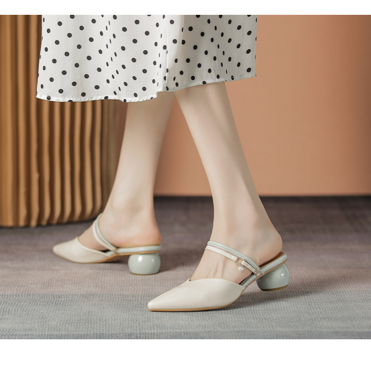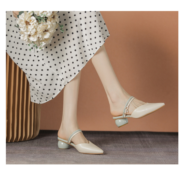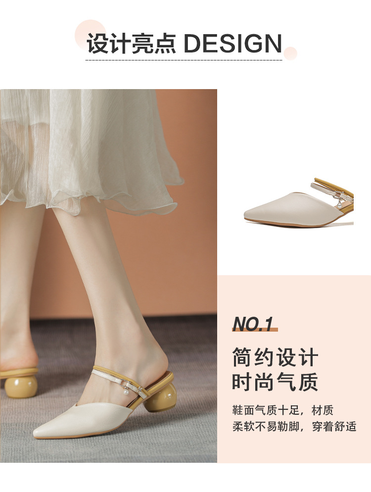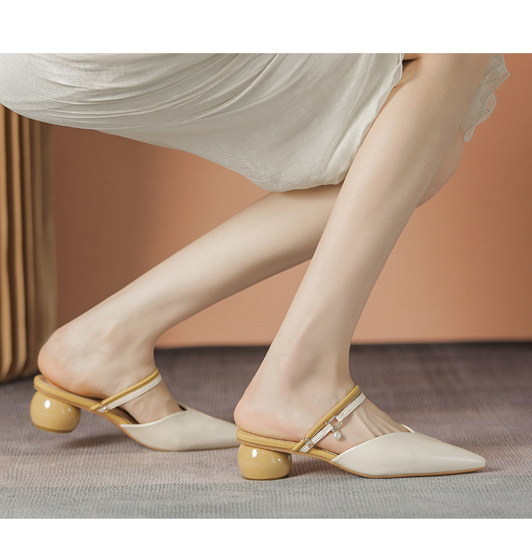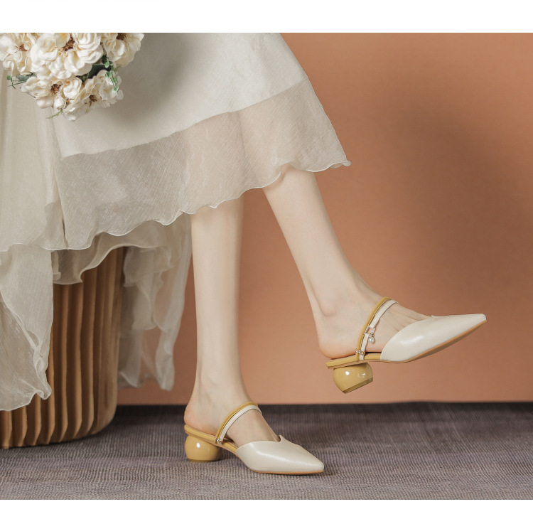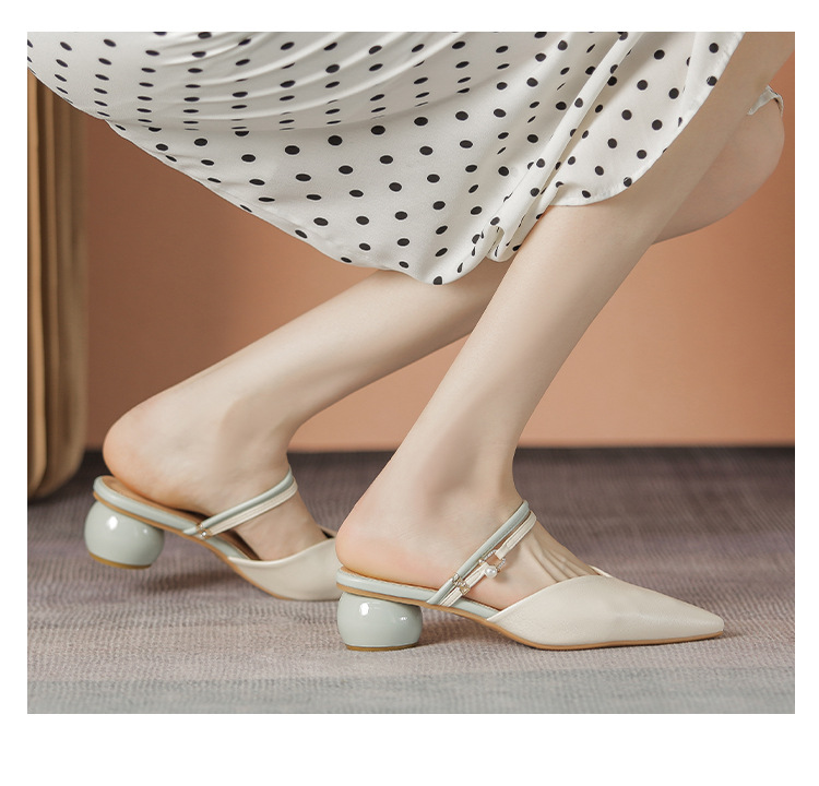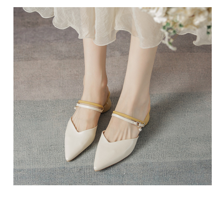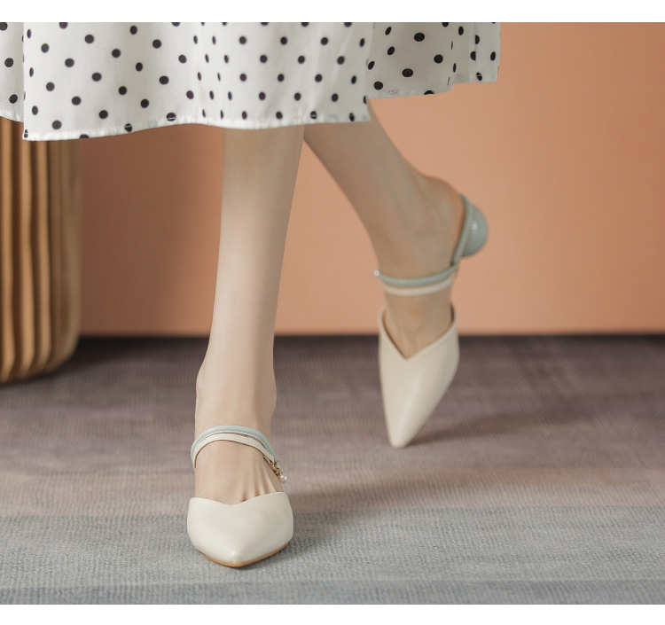 여성용 2025년 신상 여름 샌들, 스커트와 함께 신는 중간 굽/하이힐, 프렌치 스타일, 앞코가 뾰족한 슬립온 슬리퍼스토어 가기