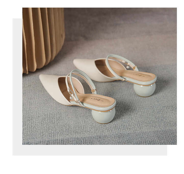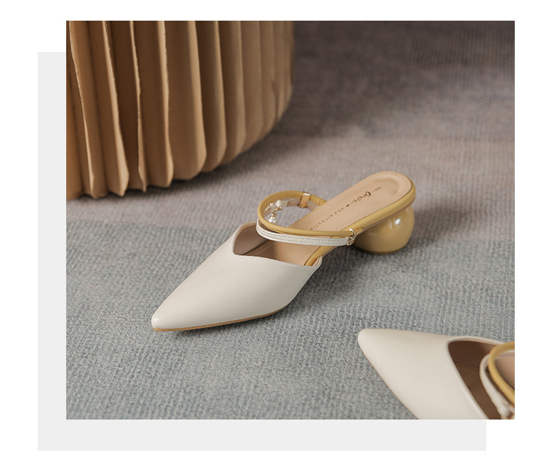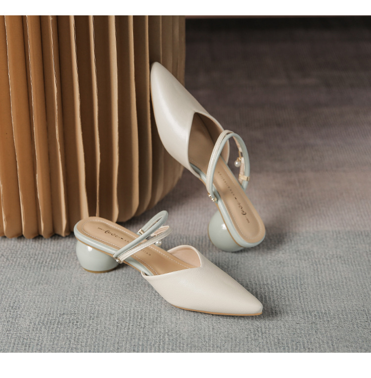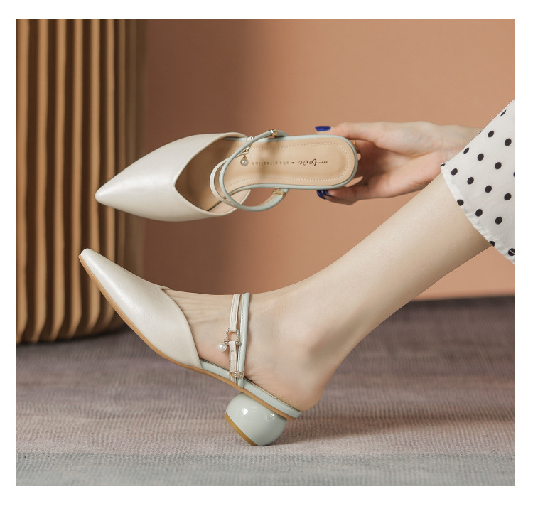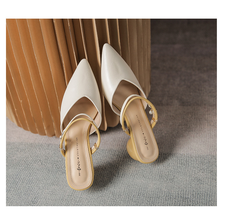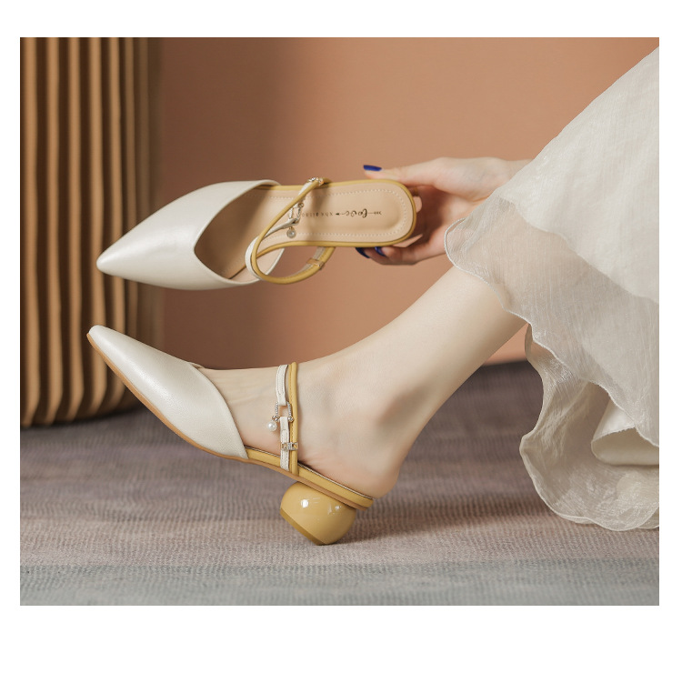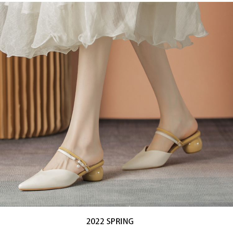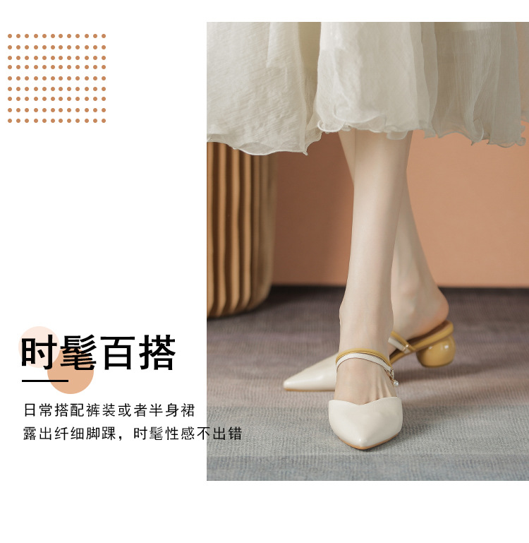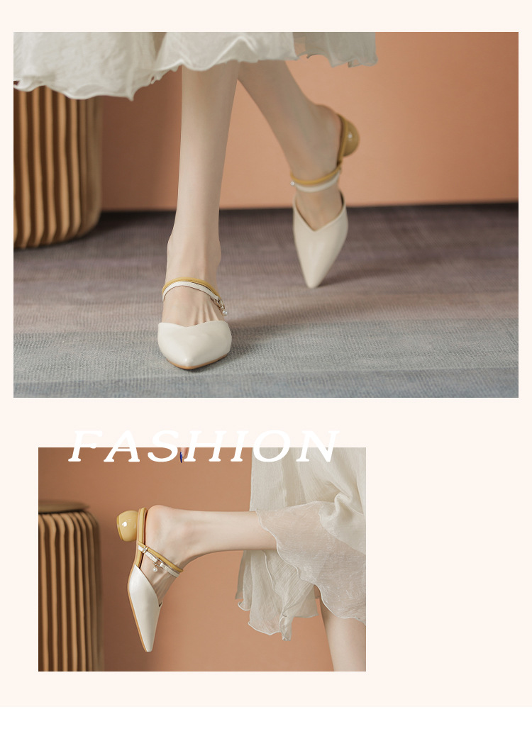 여성용 2025년 신상 여름 샌들, 스커트와 함께 신는 중간 굽/하이힐, 프렌치 스타일, 앞코가 뾰족한 슬립온 슬리퍼스토어 가기