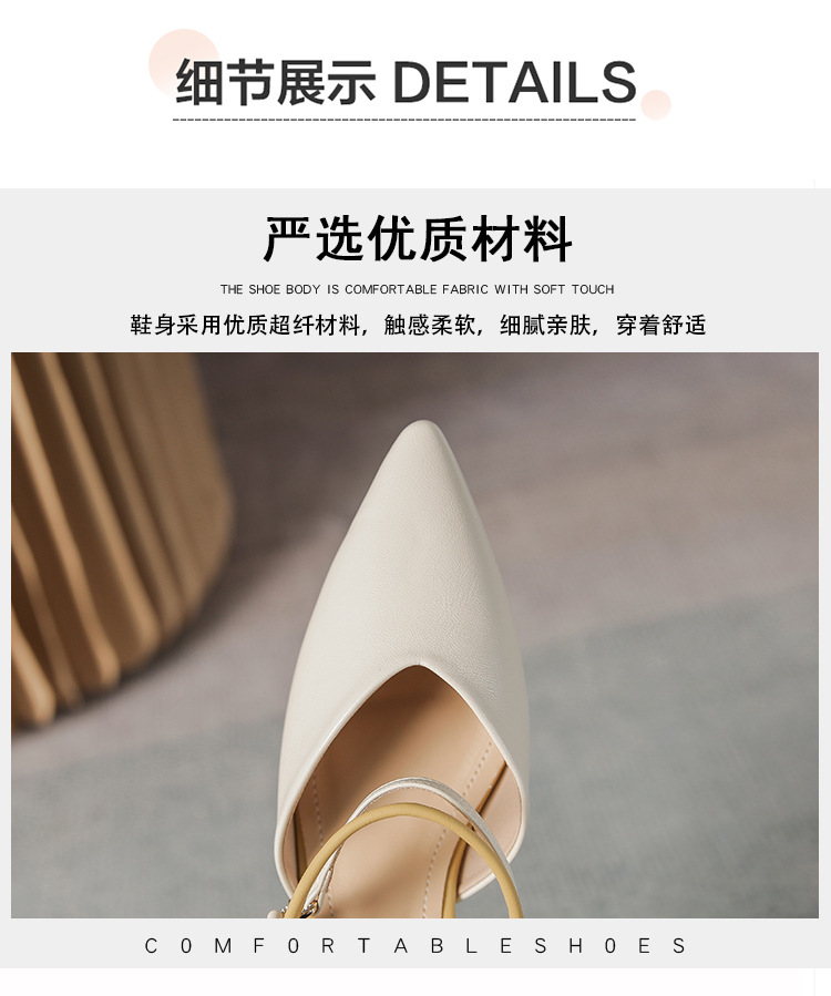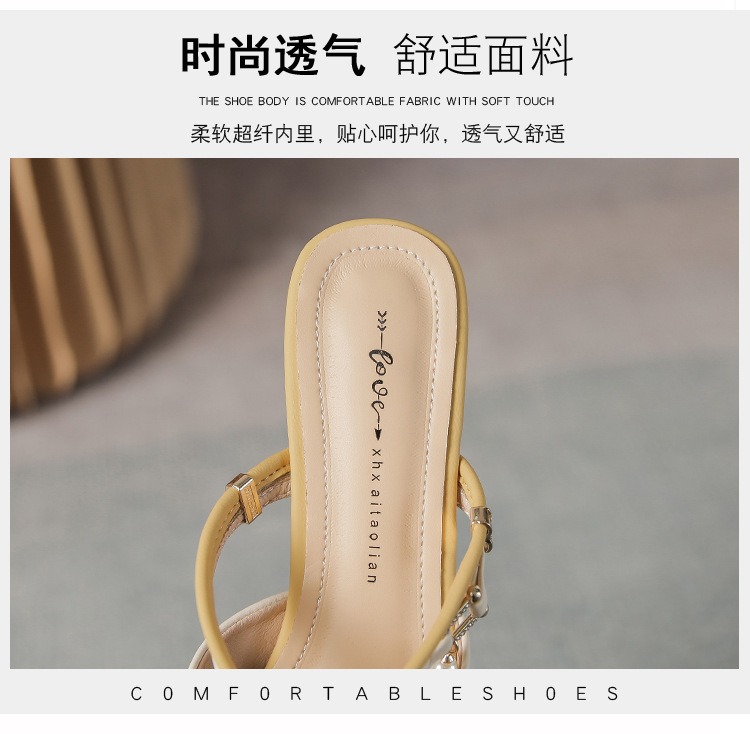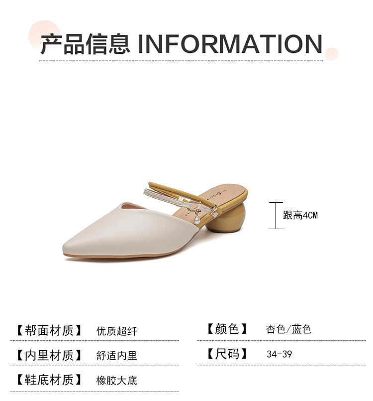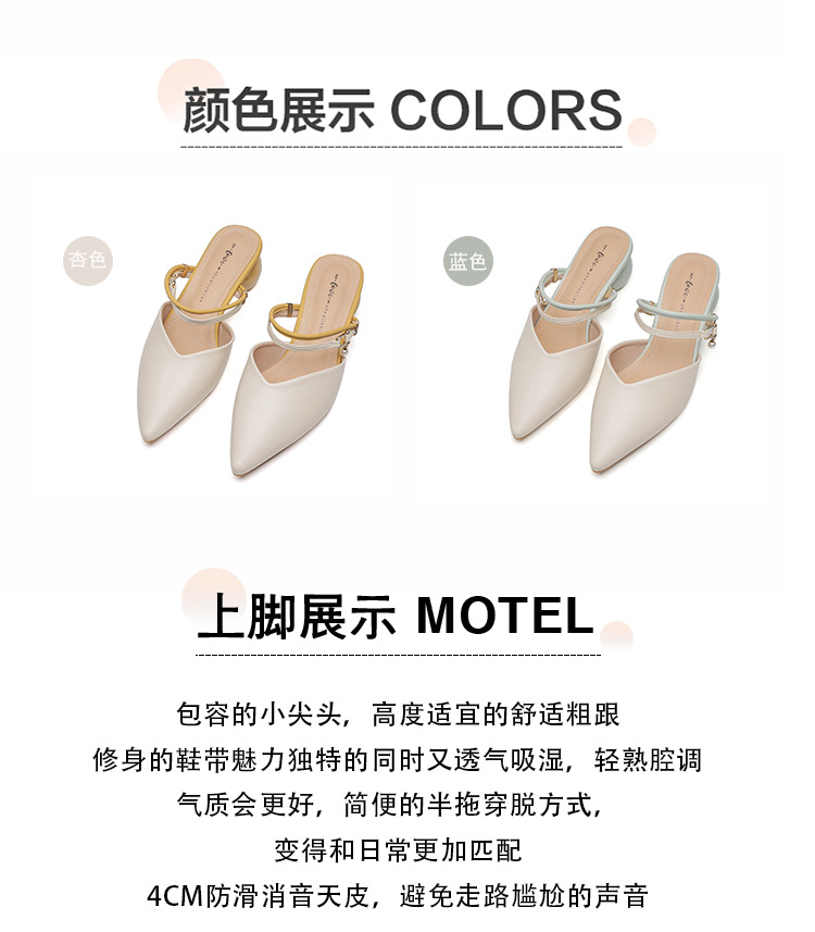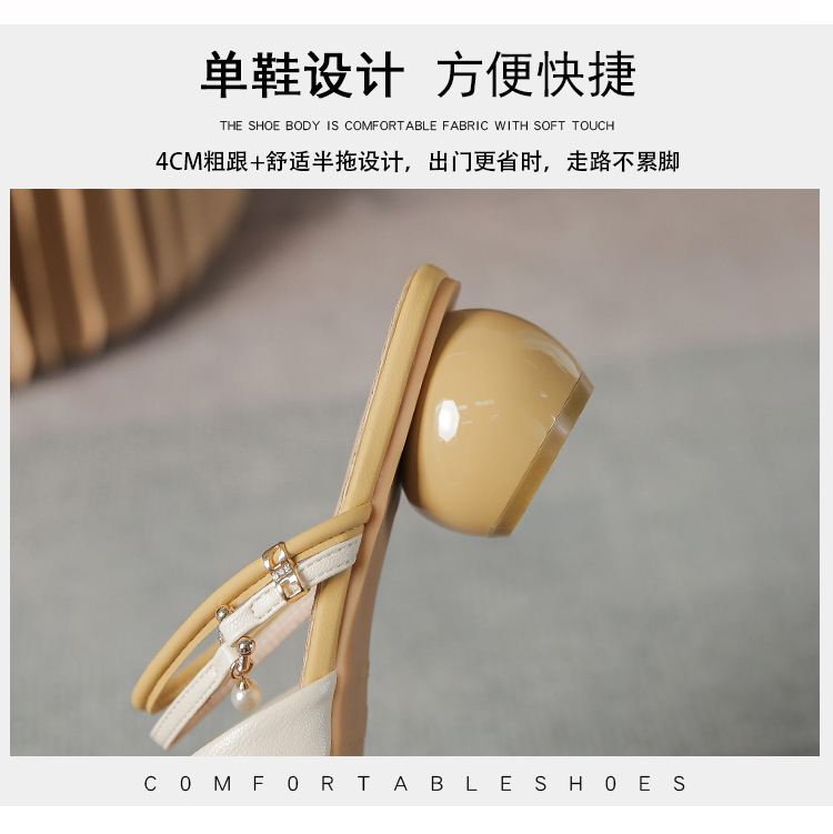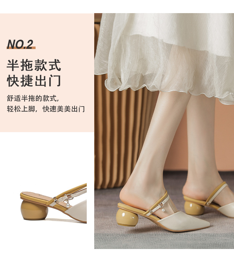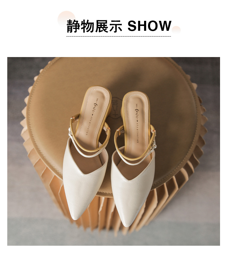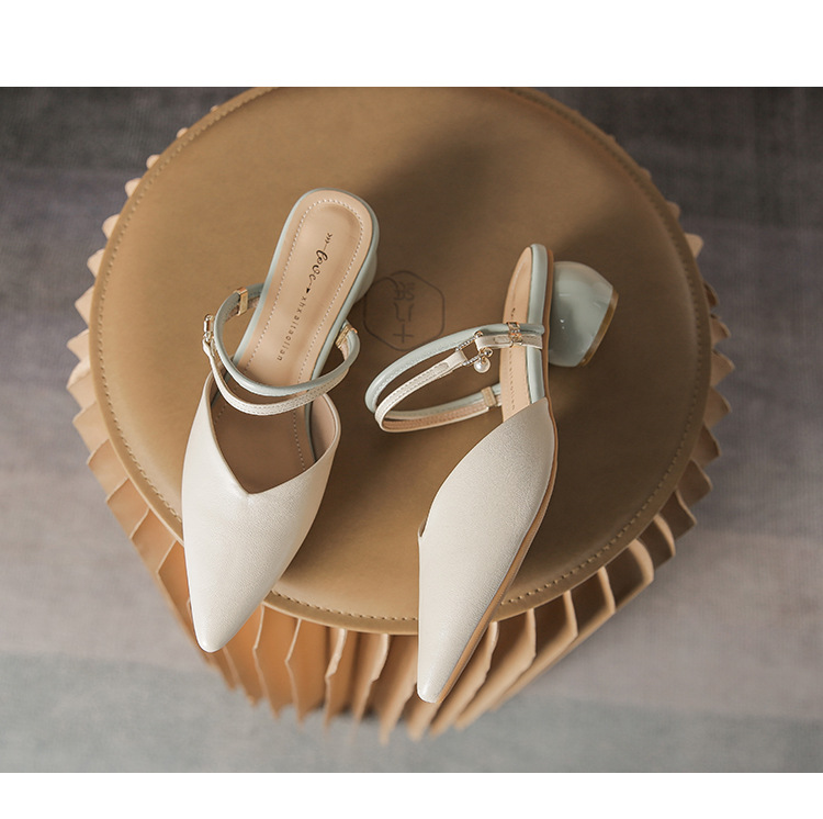 여성용 2025년 신상 여름 샌들, 스커트와 함께 신는 중간 굽/하이힐, 프렌치 스타일, 앞코가 뾰족한 슬립온 슬리퍼스토어 가기