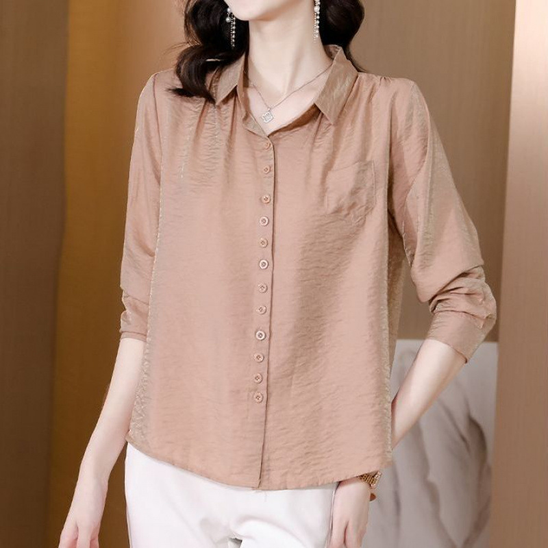 첫 번째 라인 브랜드 캐비닛 철수 얇은 긴팔 여성용 스프링 텐스 코튼 셔츠 느슨한 슬림 캐주얼 셔츠