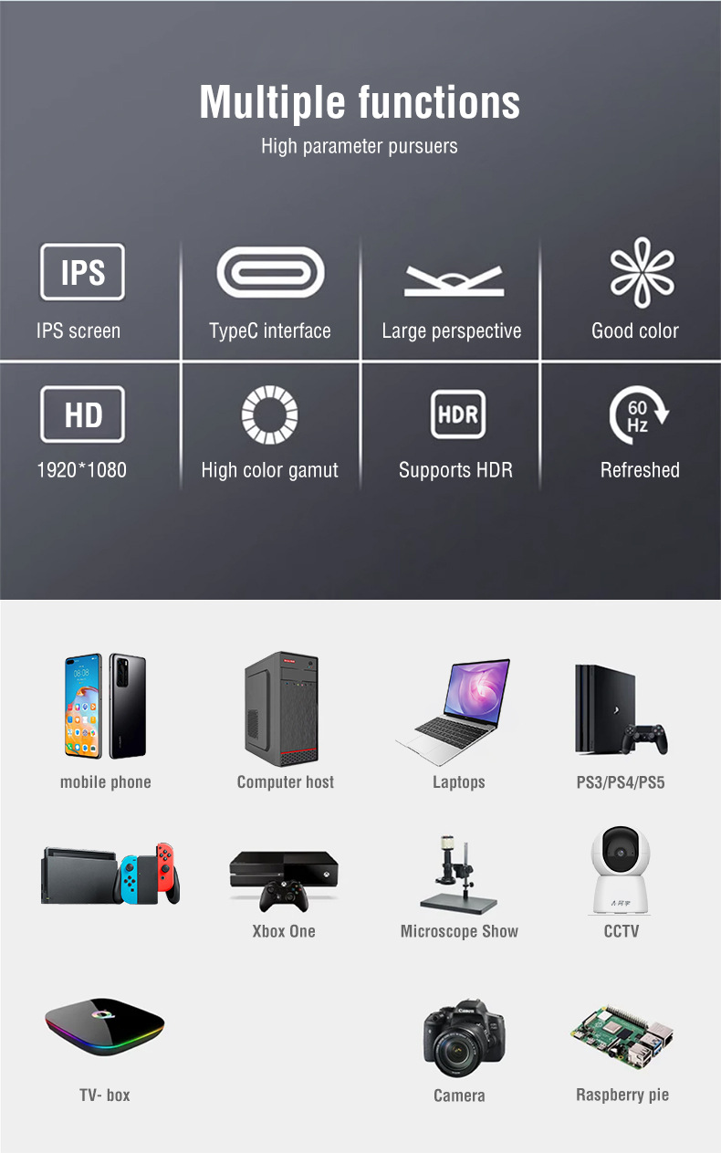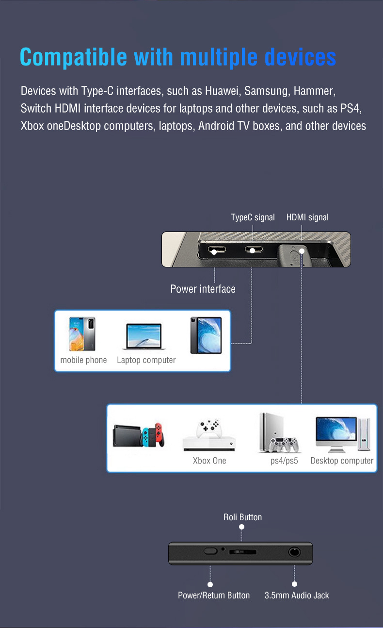 Anmite 14 인치 터치 휴대용 디스플레이 울트라 클리어 디스플레이는 휴대 전화, 컴퓨터, 노트북 태블릿을 지원합니다.