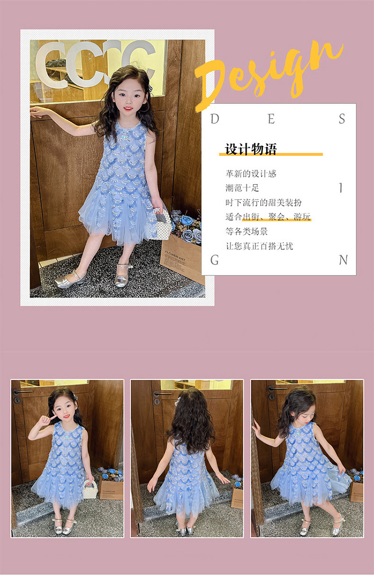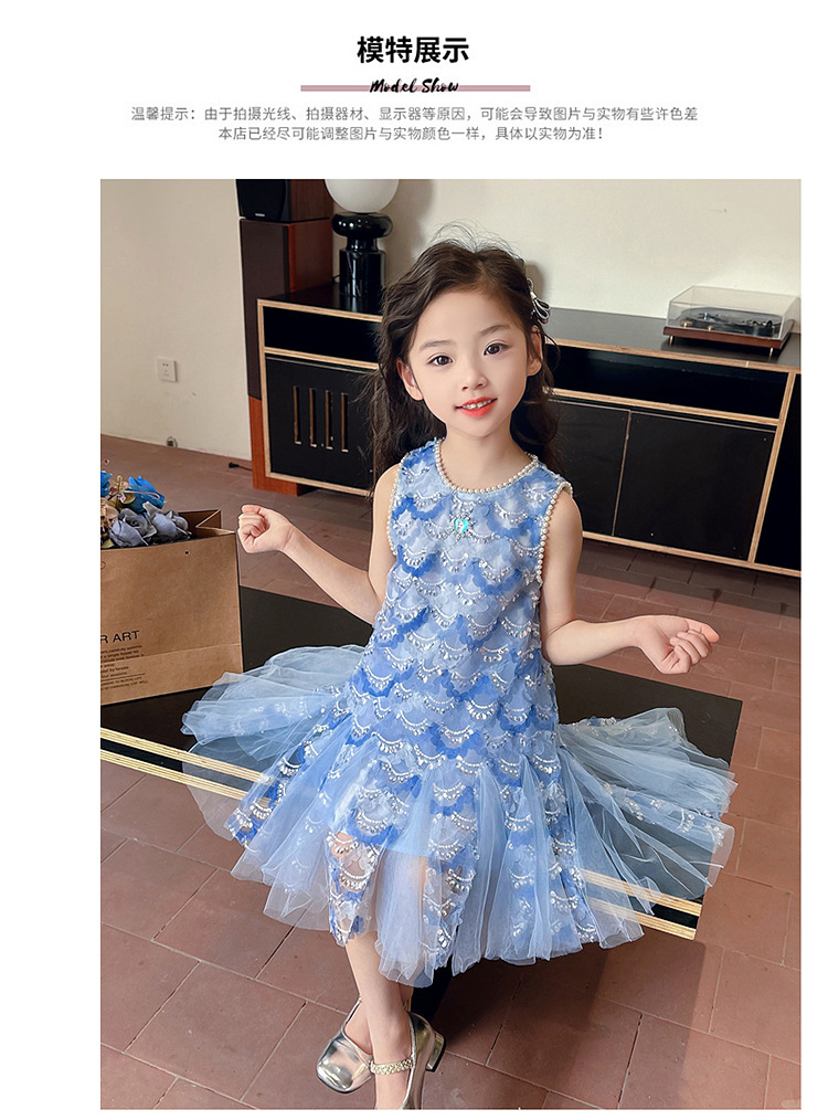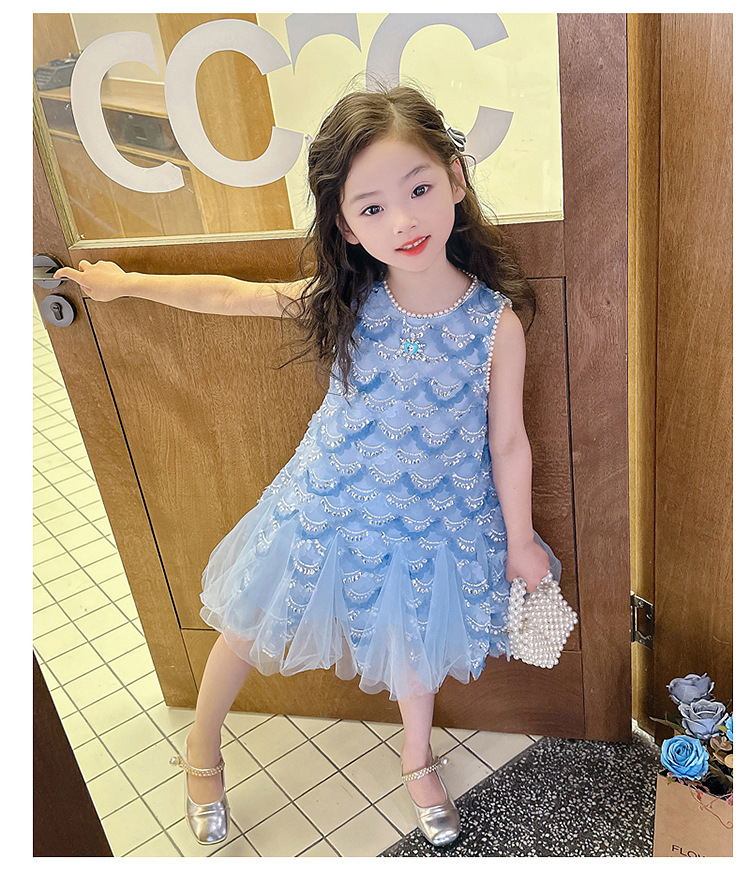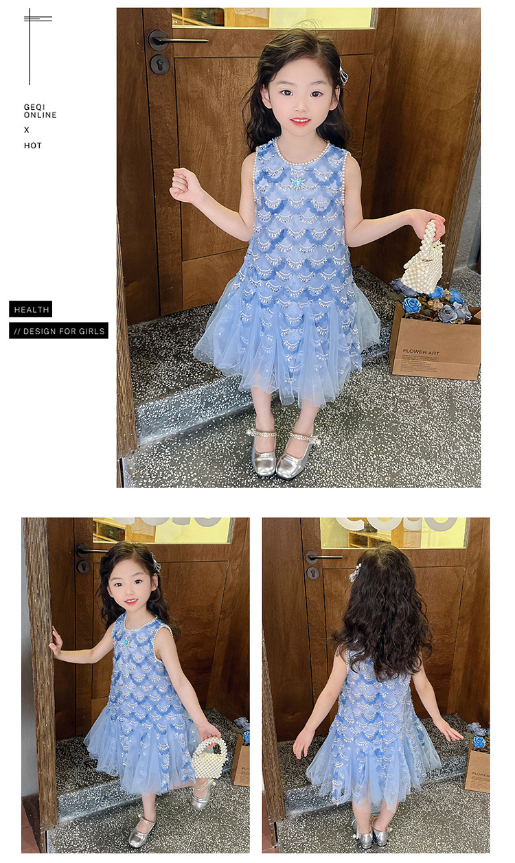 소녀 여름 2025 새로운 도착 세련된 아기 공주 원피스 어린 소녀 베일 스커트 어린이 여름 스커트