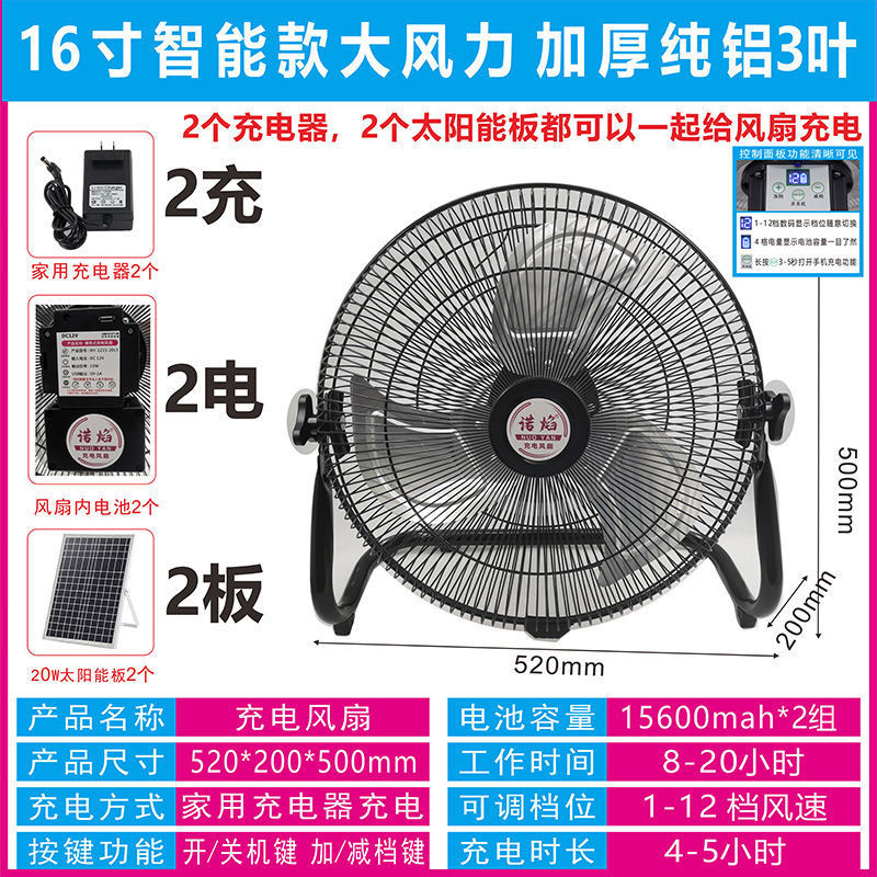 • 16inch 지능형 강풍 배터리 1개 충전 1개 태양광 패널 1개