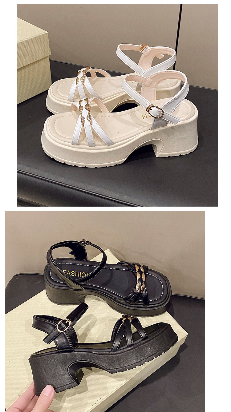 여자 여름 패션 스퀘어 헤드 두꺼운 힐 두꺼운 바닥 올 매치 피곤하지 않은 웨지 힐 여성 신발 샌들 2024 새로운스토어 가기