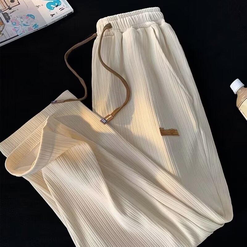 새로운 아이스 실크 바지 남자 여름 얇은 빠른 건조 스포츠 레저 느슨한 허리 느슨한 드레이퍼 에어컨 트렌디 바지