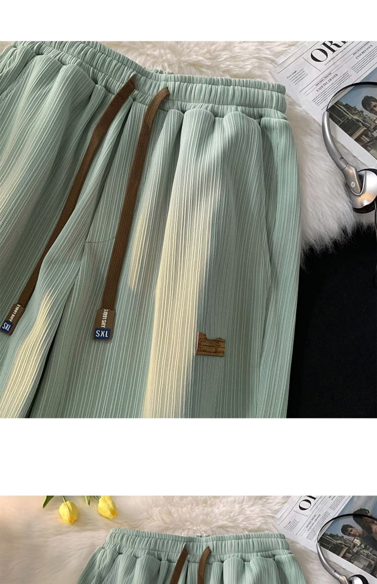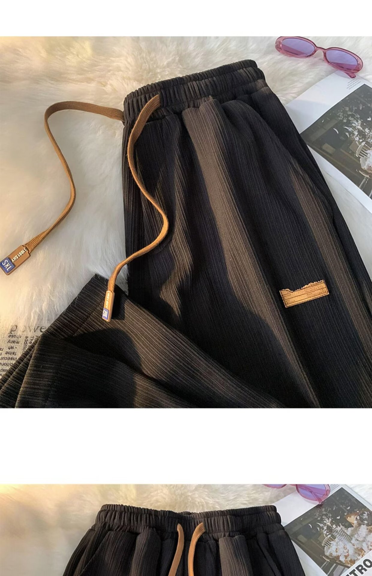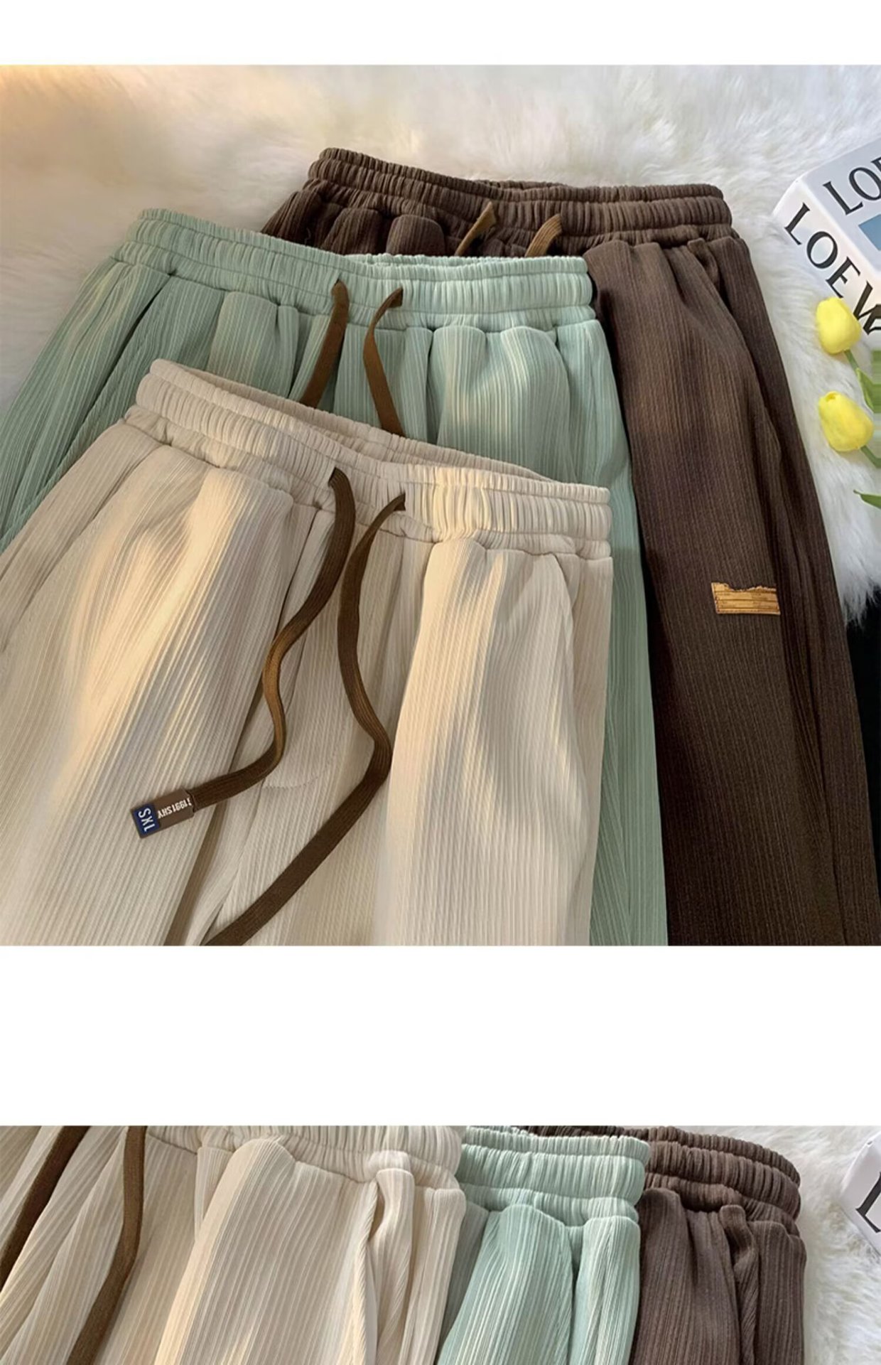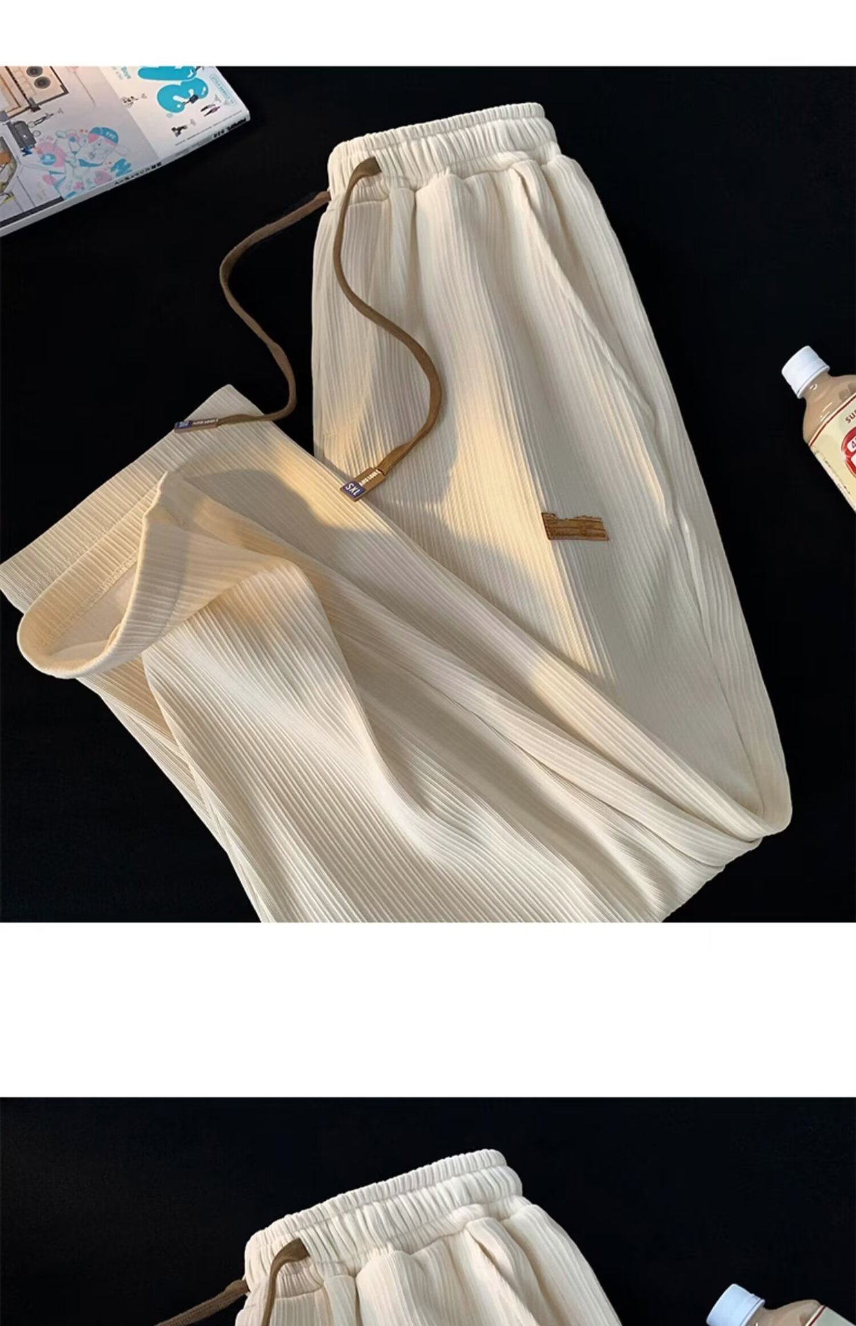 새로운 아이스 실크 바지 남자 여름 얇은 빠른 건조 스포츠 레저 느슨한 허리 느슨한 드레이퍼 에어컨 트렌디 바지스토어 가기