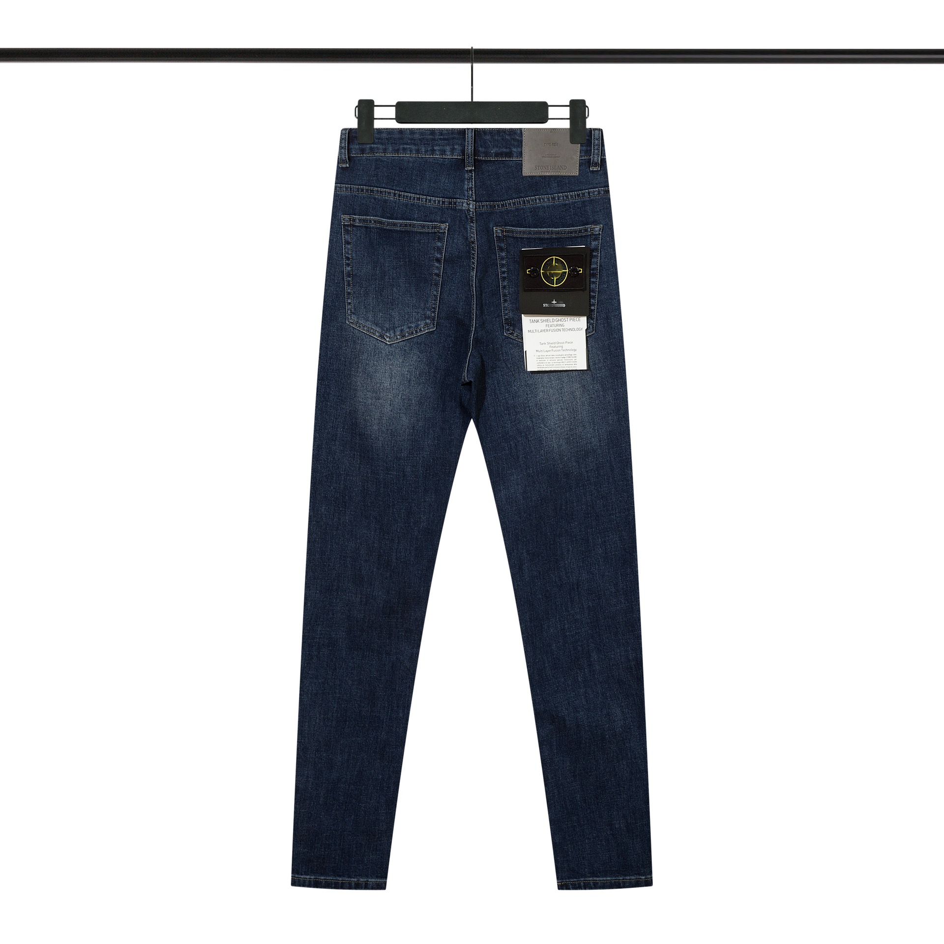 크로스보더 스톡 스톤 뉴 워싱 데님 팬츠, 뒷주머니 자수 배지, 루즈핏 아일랜드 남성용 롱 팬츠스토어 가기