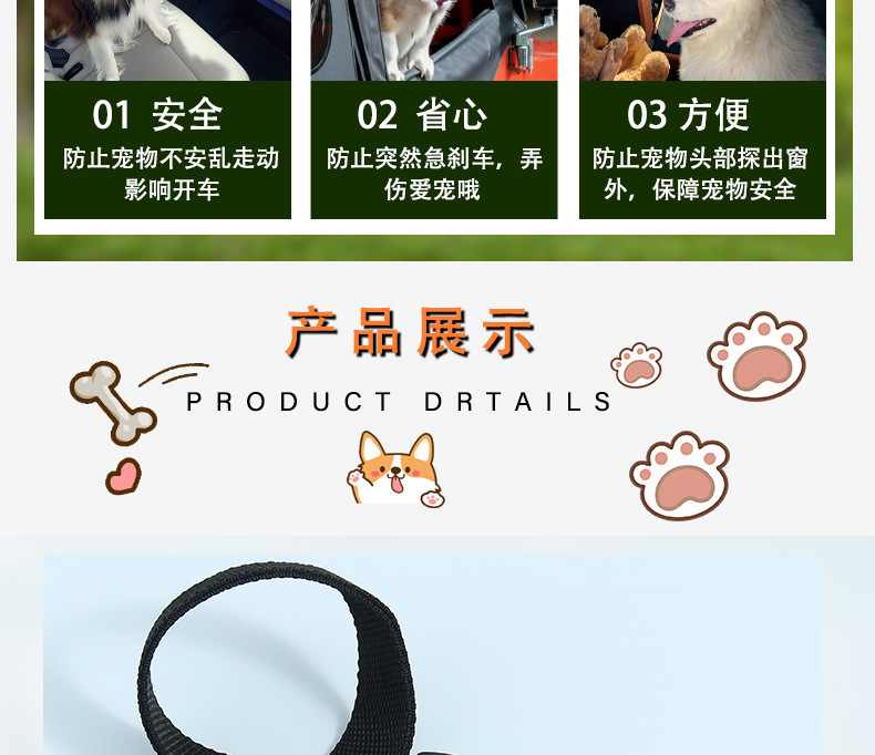 국경 간 자동차 애완 동물 용품 고양이와 개 안전 벨트 고정 견인 로프 애완 동물 칼라 아마존 핫 세일
