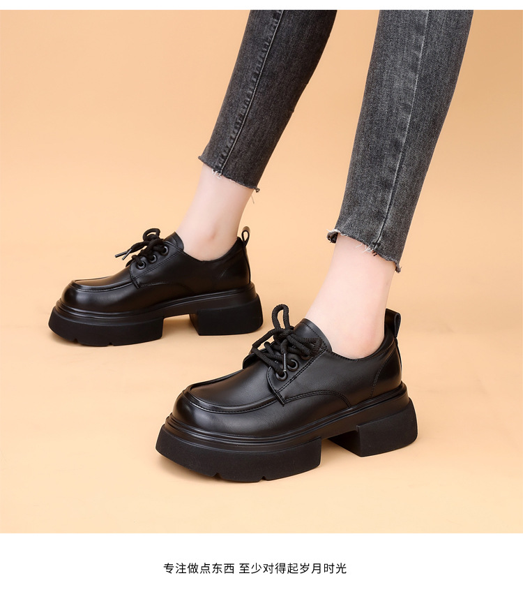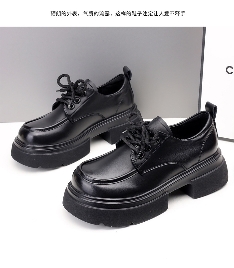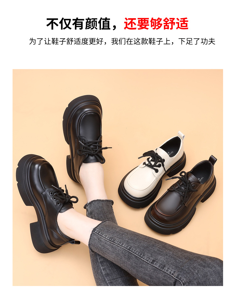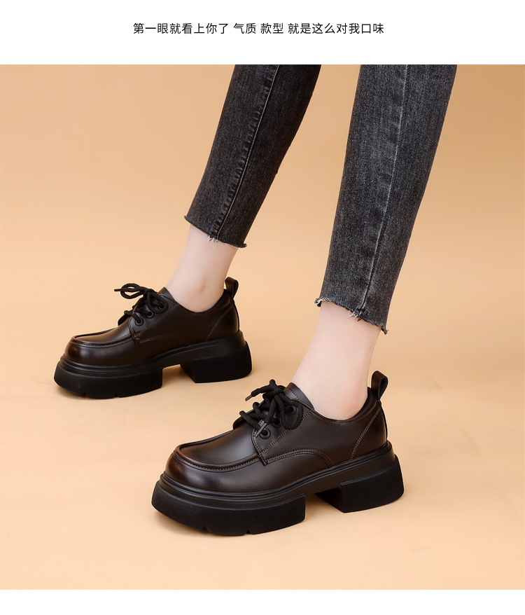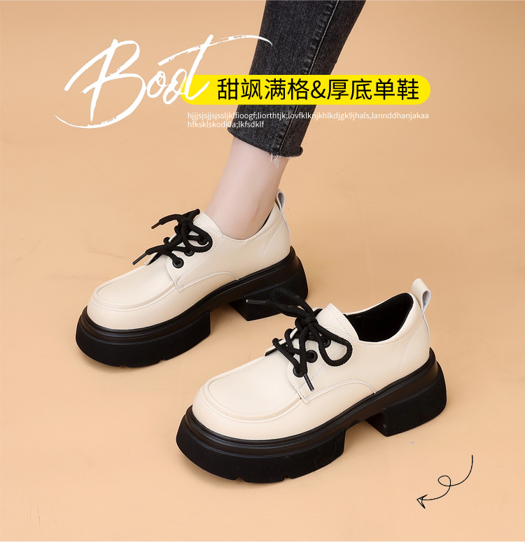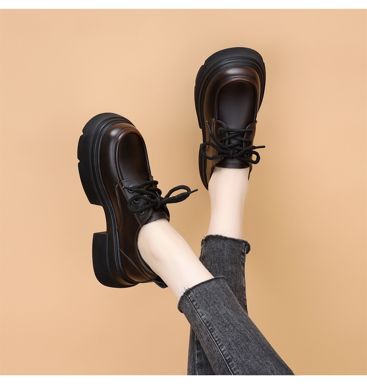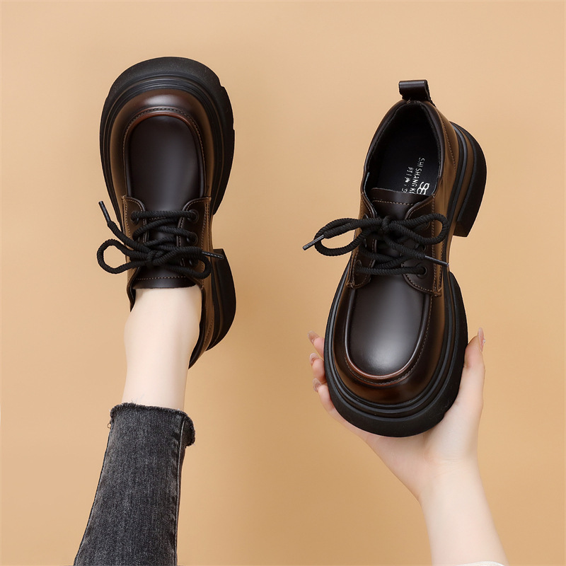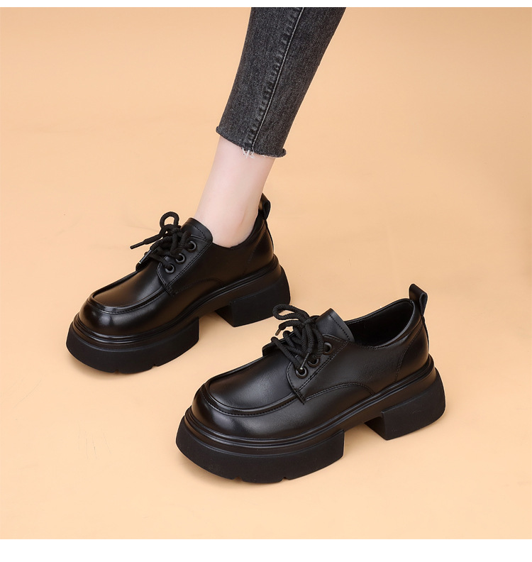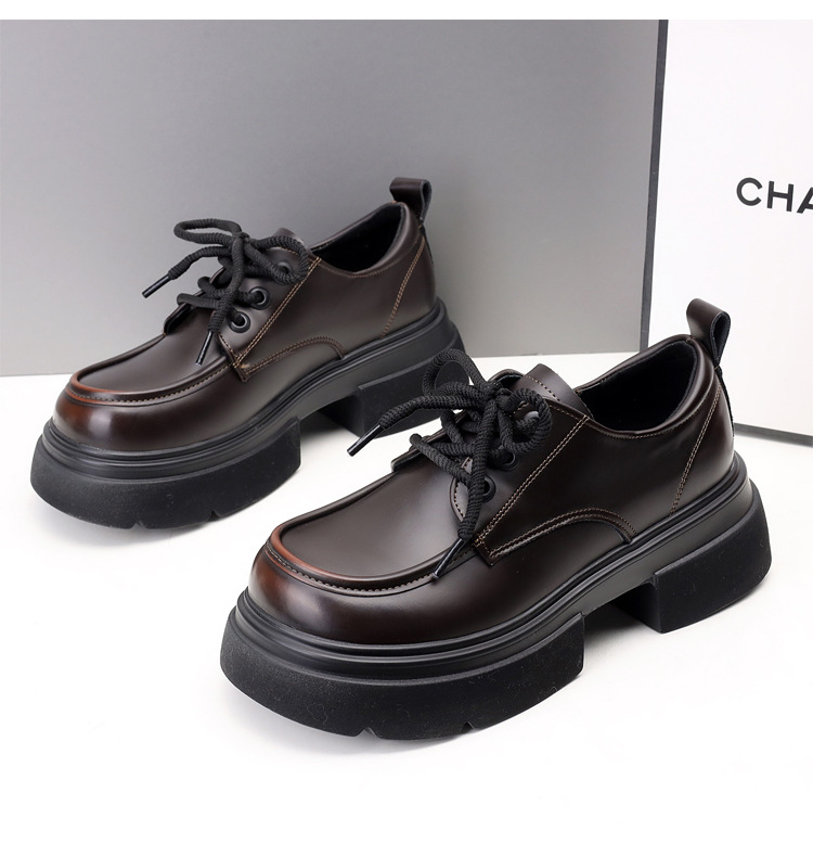 여성용 천연 가죽 두꺼운 밑창 로퍼 2025 봄 신상 끈 묶는 두꺼운 굽 작은 키도 잘어울리는 슬림핏 스트리트 스타일 가죽 신발스토어 가기