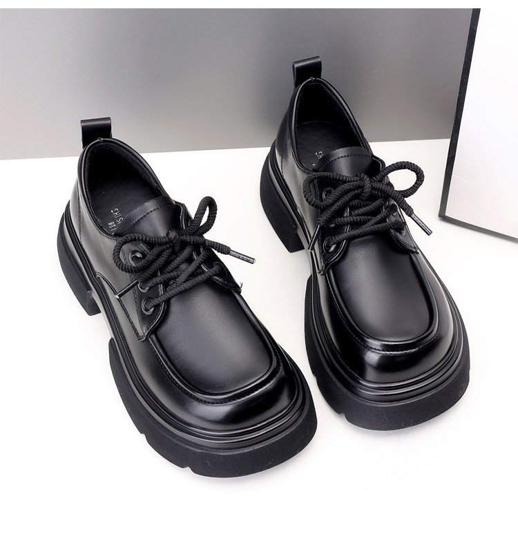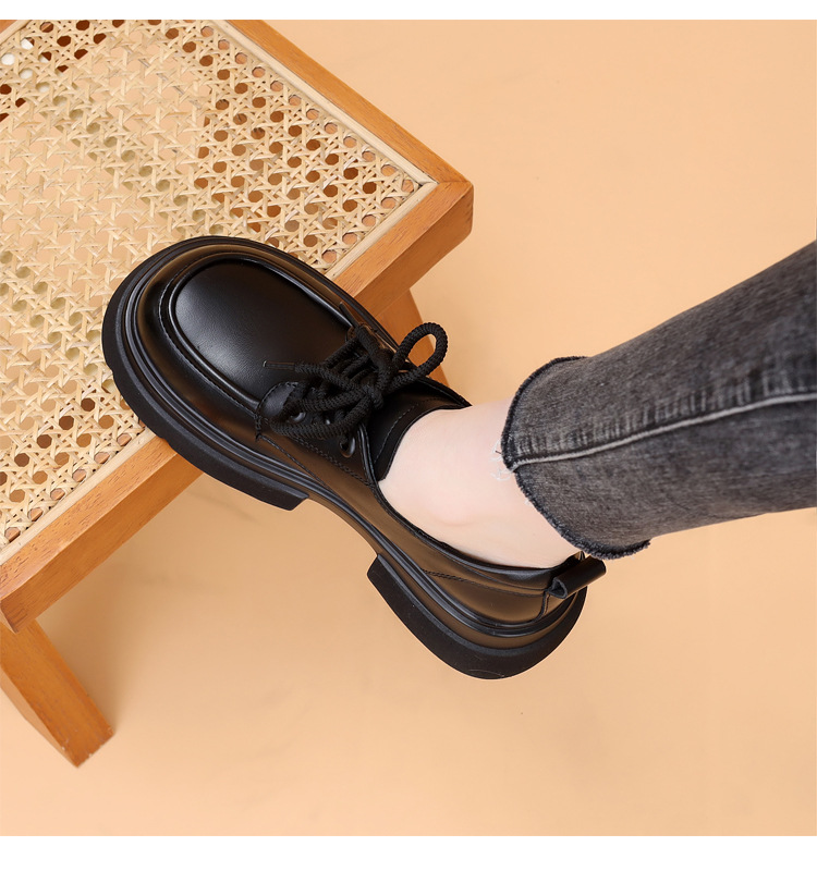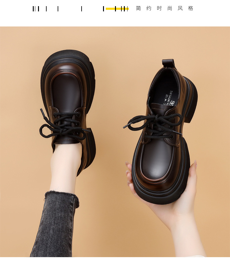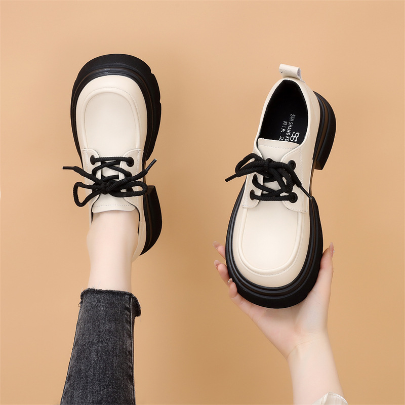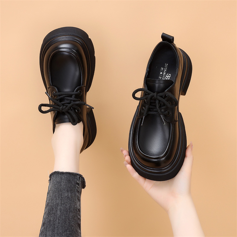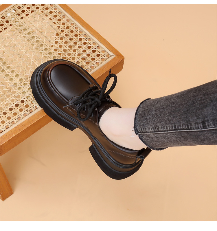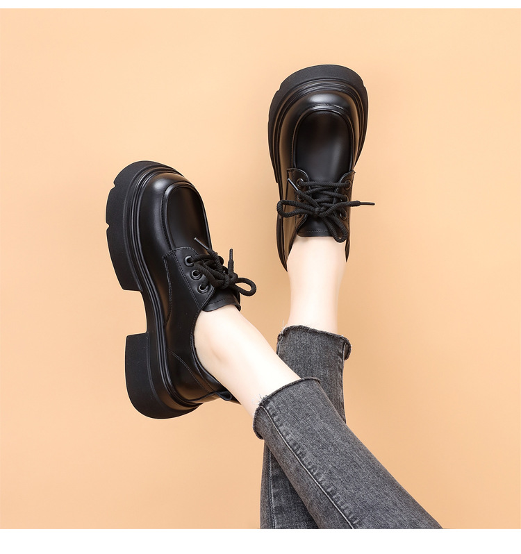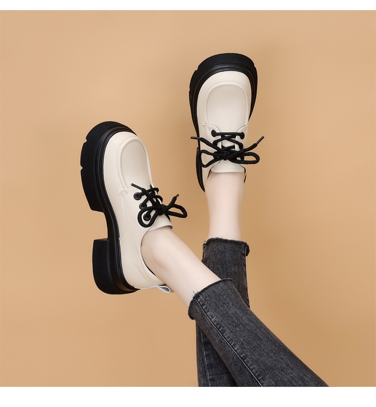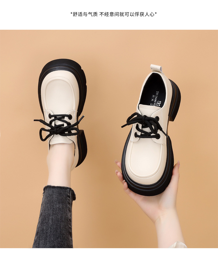 여성용 천연 가죽 두꺼운 밑창 로퍼 2025 봄 신상 끈 묶는 두꺼운 굽 작은 키도 잘어울리는 슬림핏 스트리트 스타일 가죽 신발스토어 가기