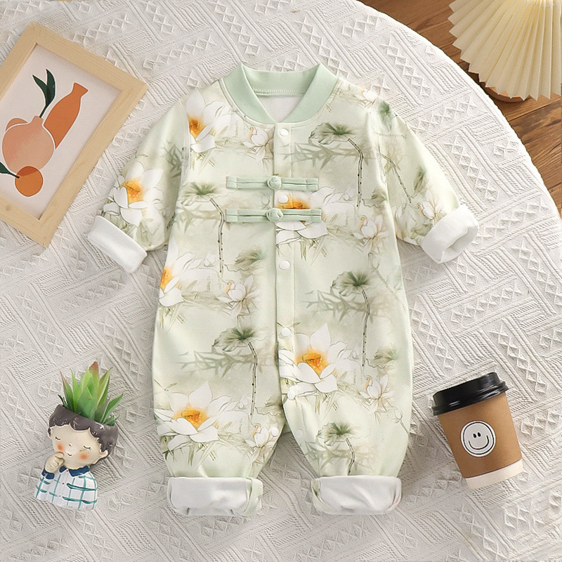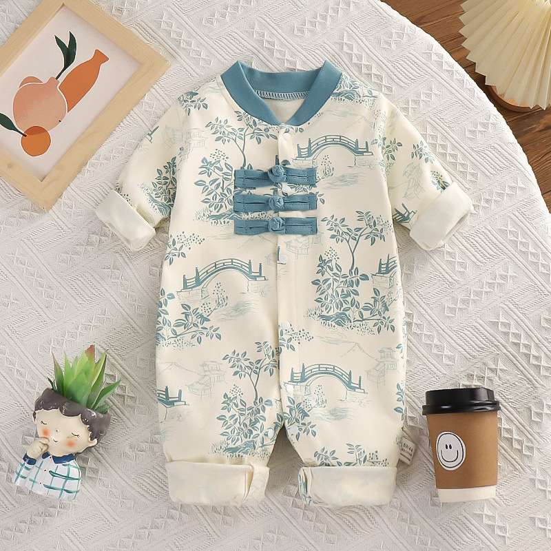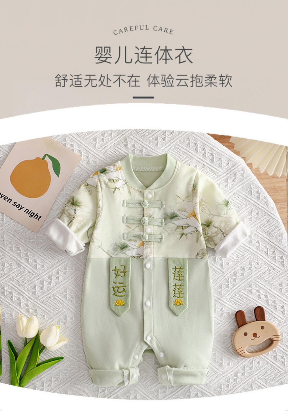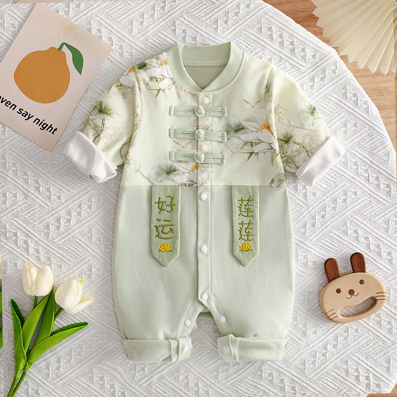 아기 봄, 가을 중국 스타일 점프 슈트 순수 코튼 긴 소매 아기 옷 프린지 중국 스타일 하렘스토어 가기
