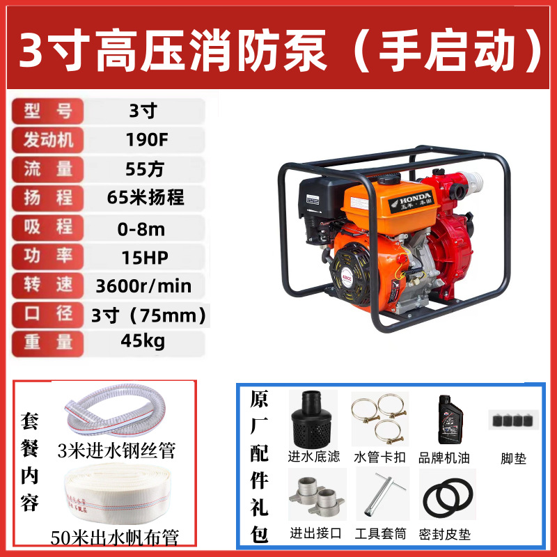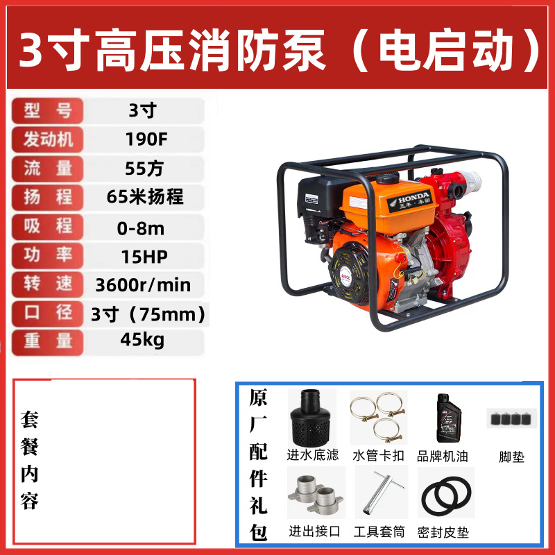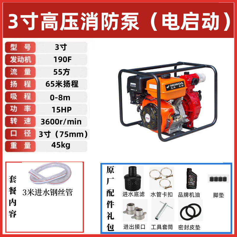 • [전기 시동] 3inch 고압 소방 펌프(15hp) - 표준 구성 + 5m 물 입구 파이프 + 100m 출구 파이프