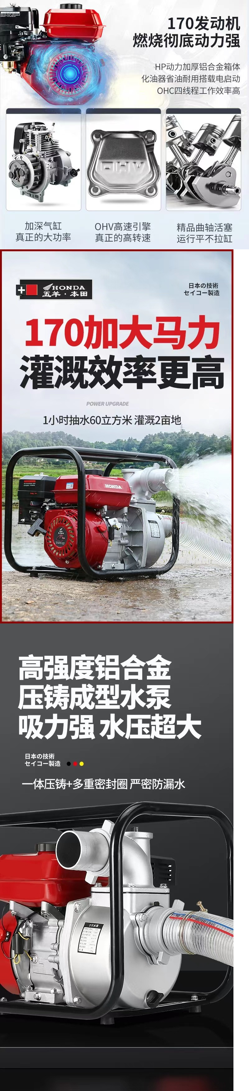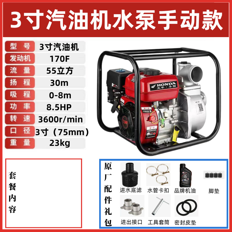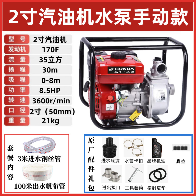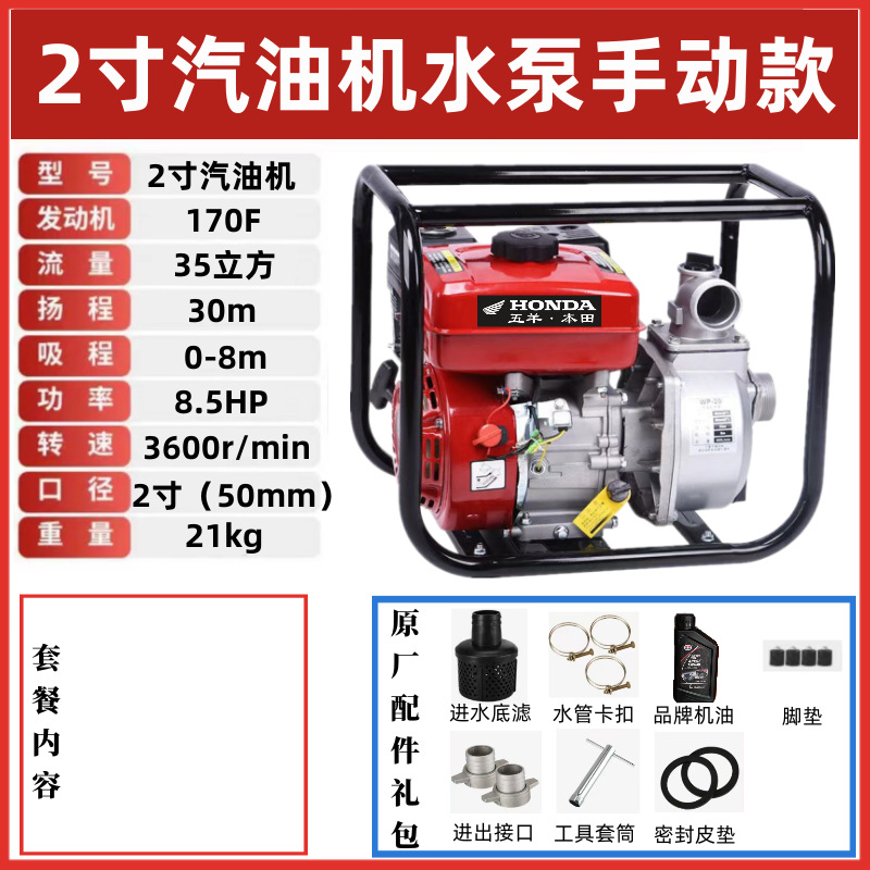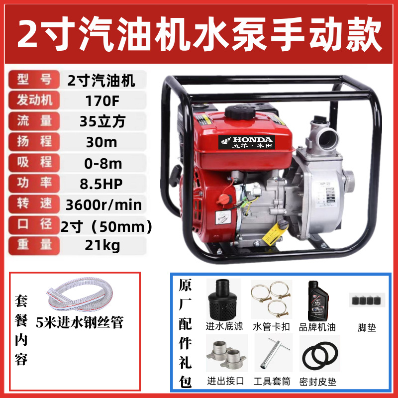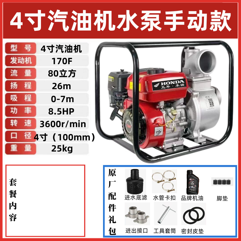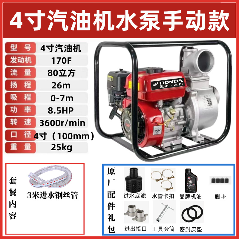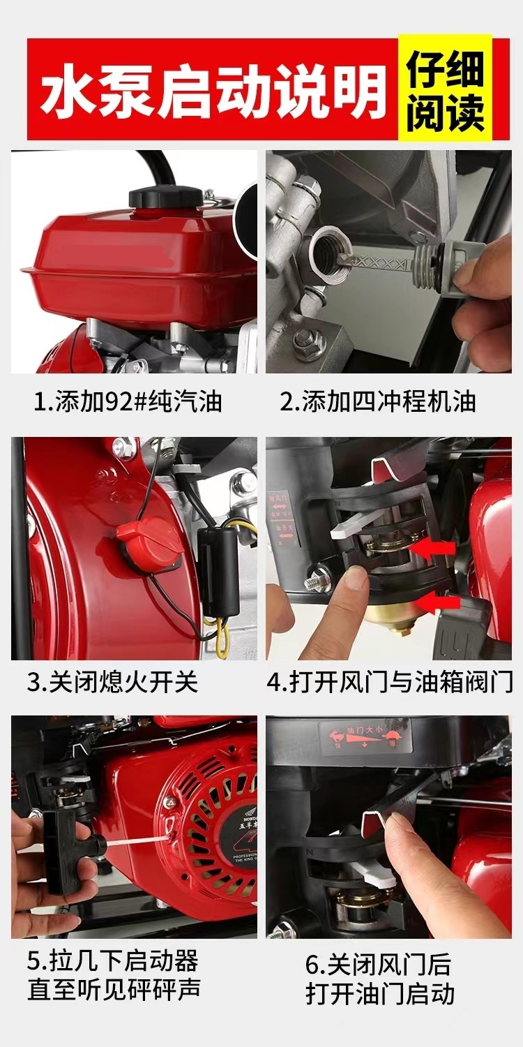 우양 혼다 새로운 가솔린 엔진 워터 펌프 농업 소형 고압 4 행정 워터 펌프 농지 관개 234 인치