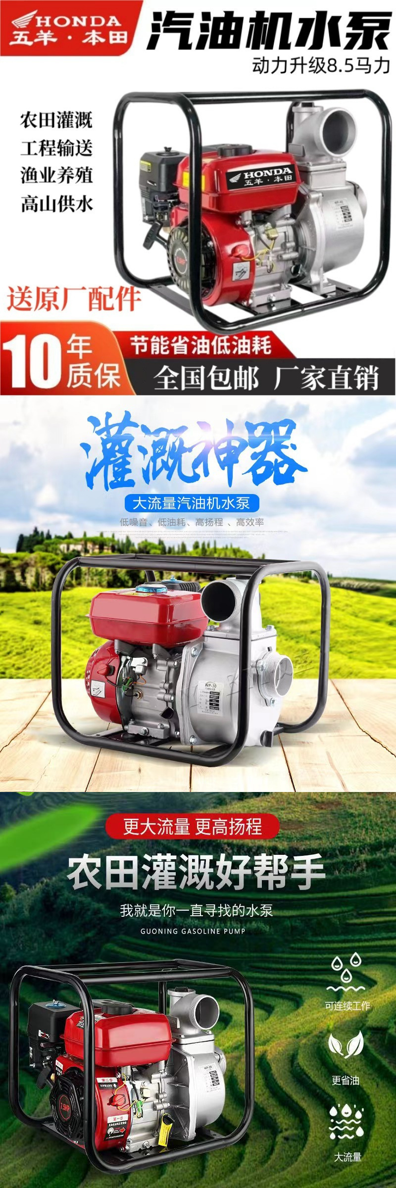 우양 혼다 새로운 가솔린 엔진 워터 펌프 농업 소형 고압 4 행정 워터 펌프 농지 관개 234 인치스토어 가기