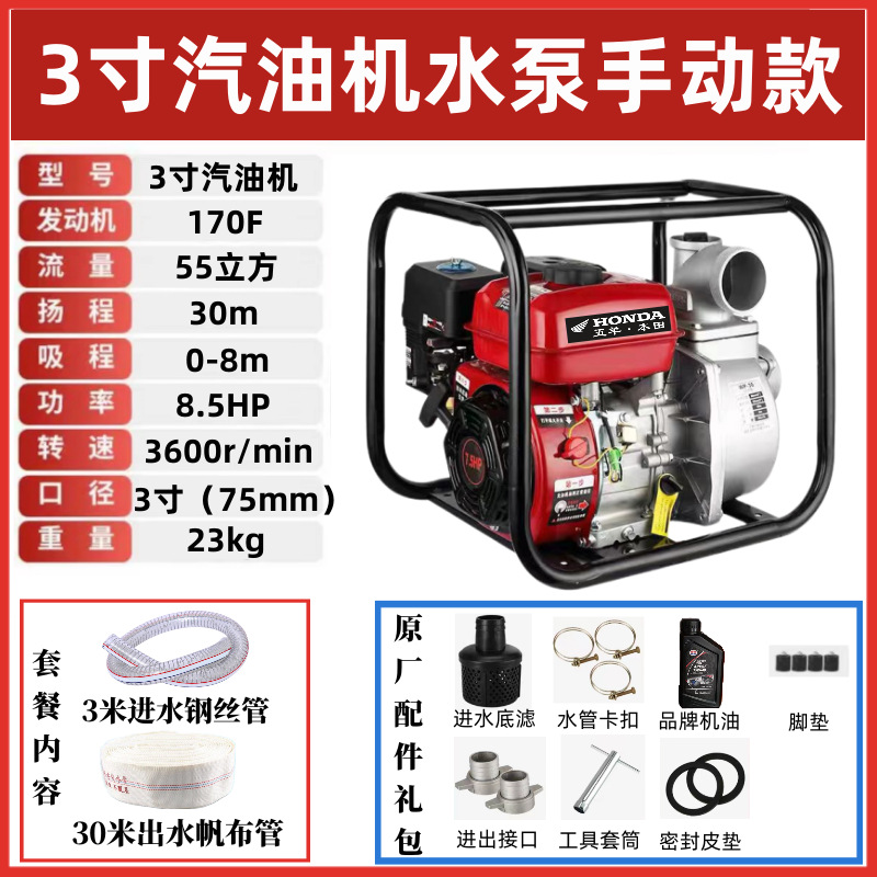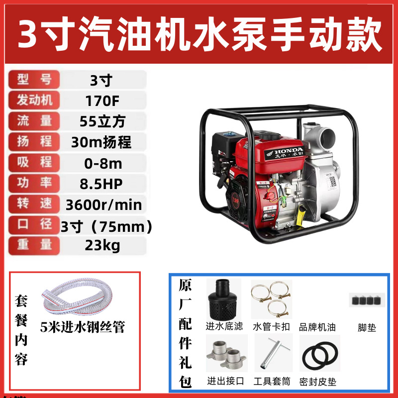 • [고구성] 3inch 가솔린 엔진 워터 펌프(8.5hp) - 표준 구성 + 3m 물 유입 파이프
