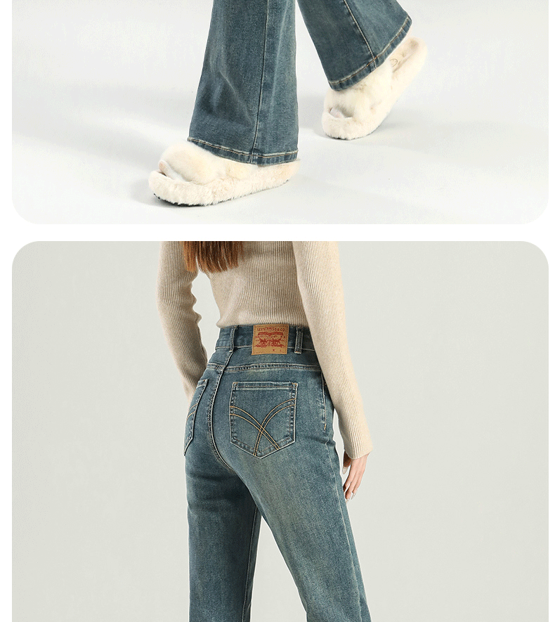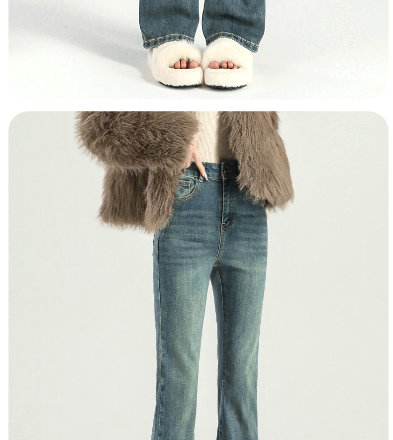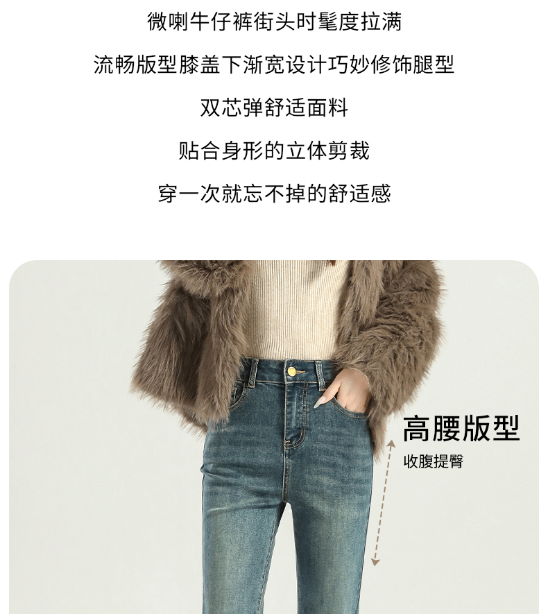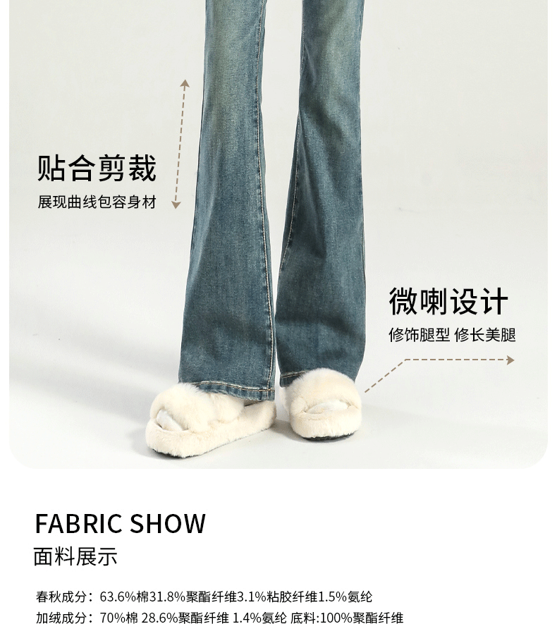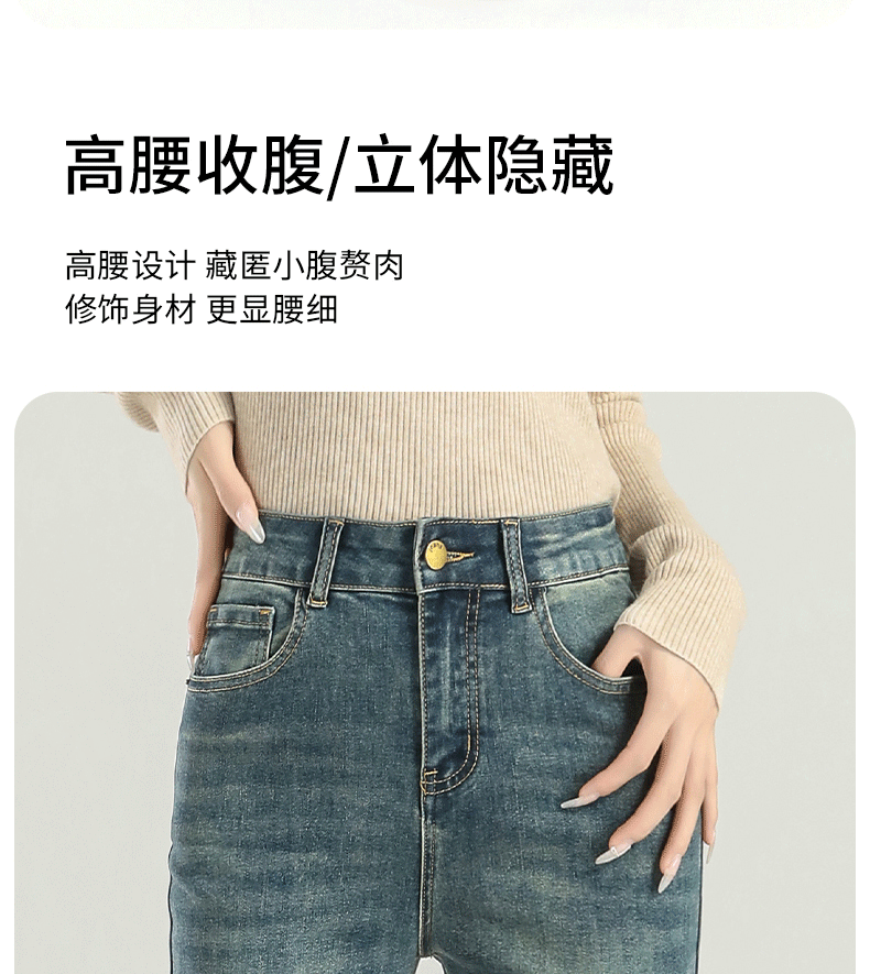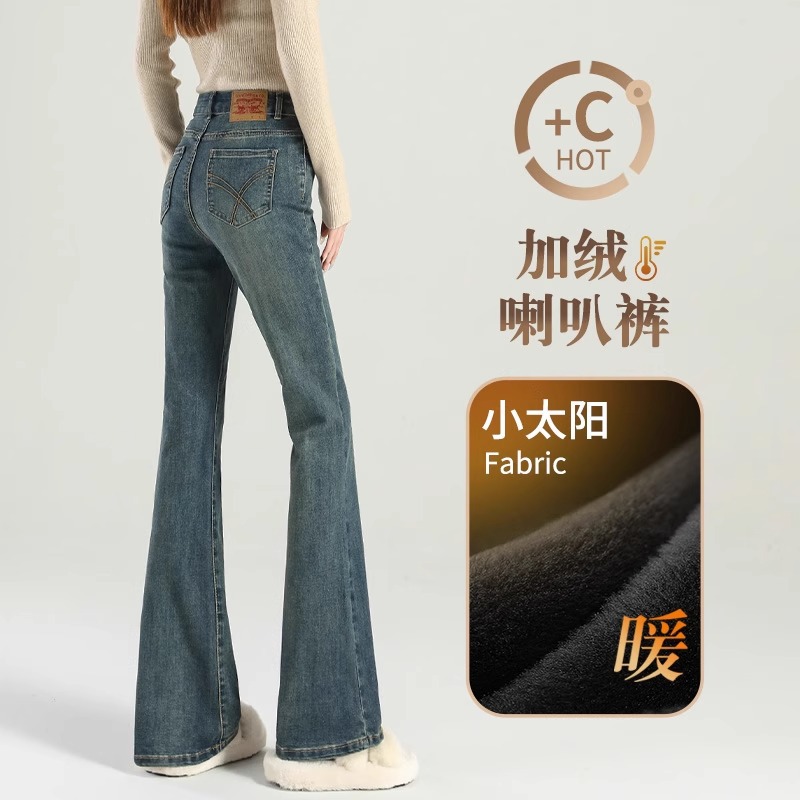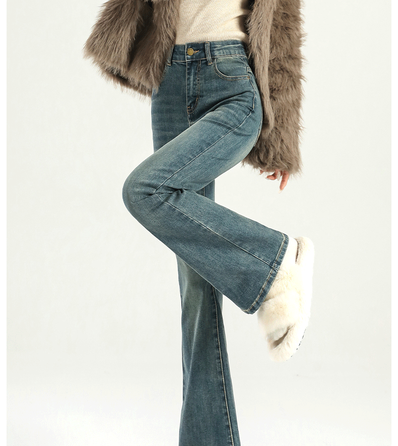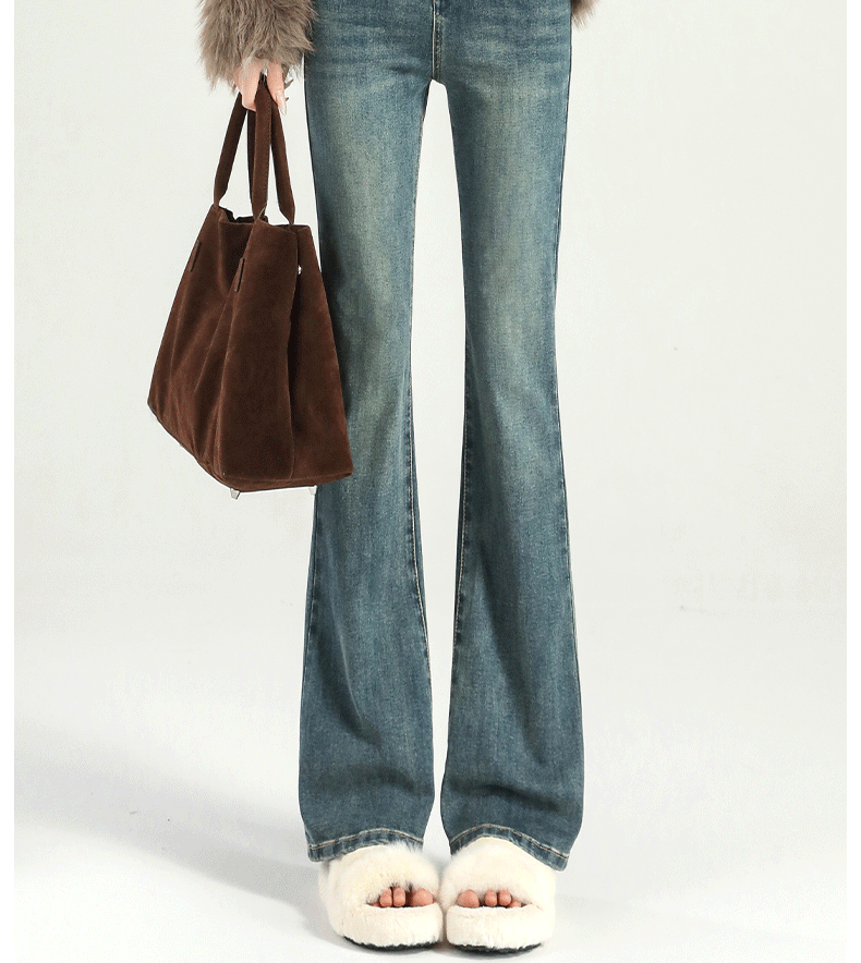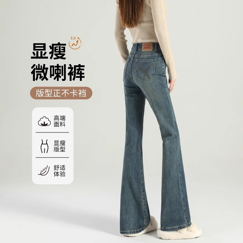마이크로 라 청바지 여성의 봄과 가을 2025 새로운 폭발 작은 높은 허리 슬리밍 탄성 기모 경적 바지스토어 가기