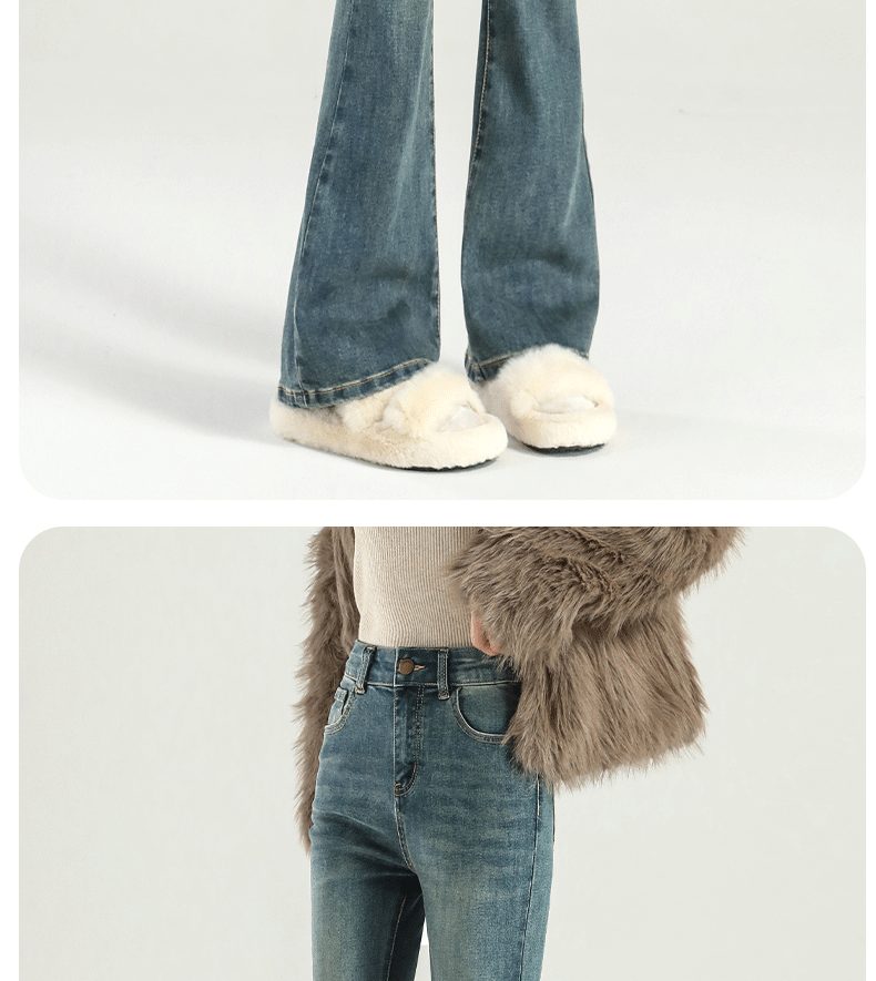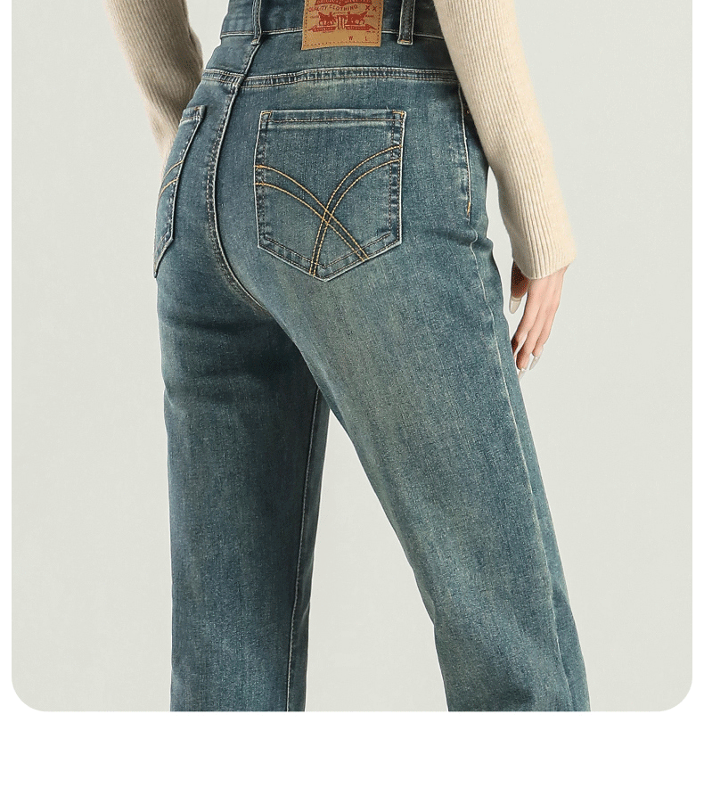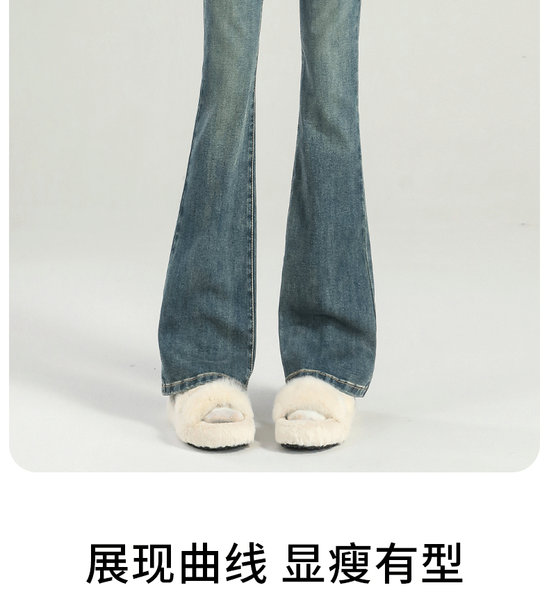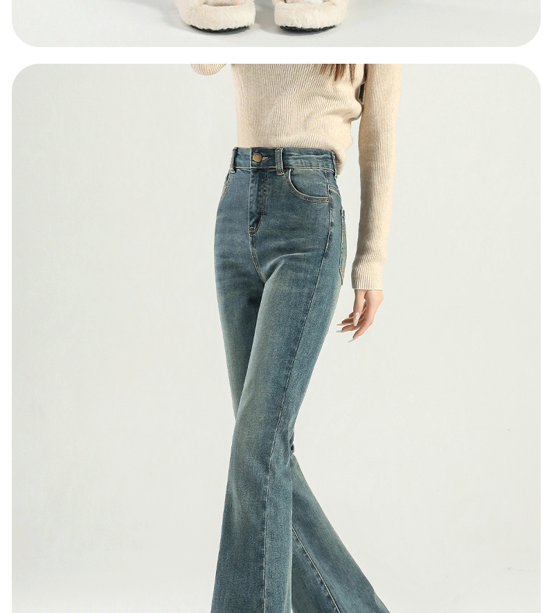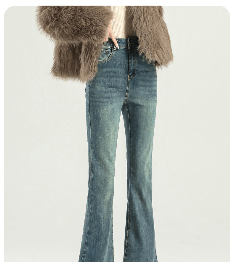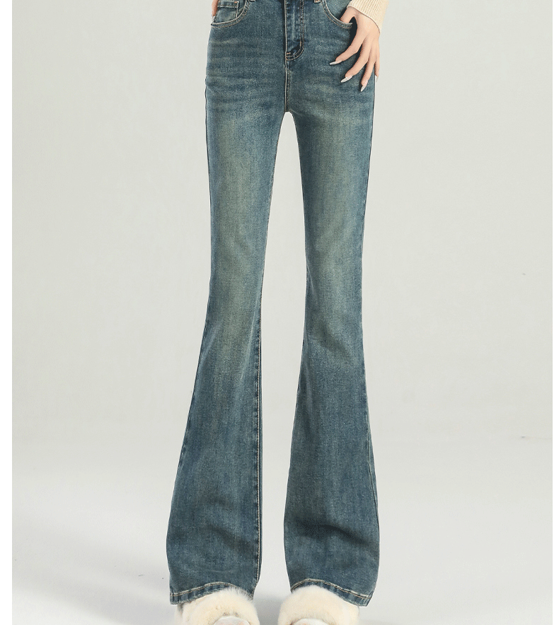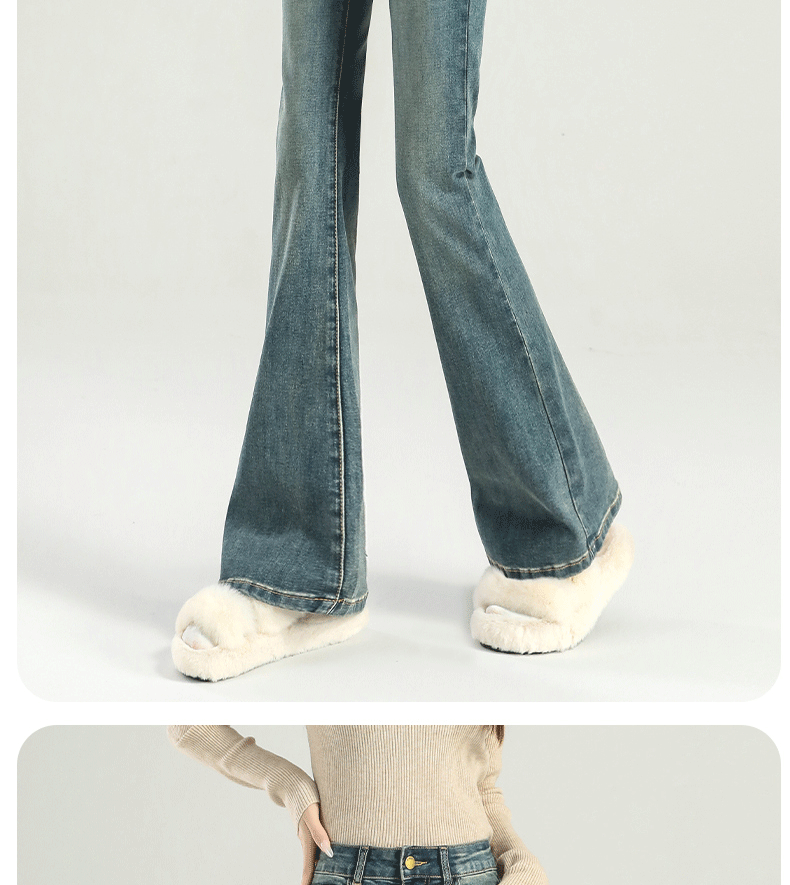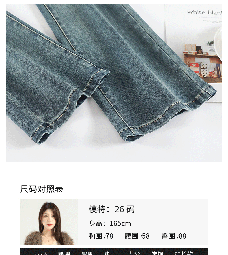 마이크로 라 청바지 여성의 봄과 가을 2025 새로운 폭발 작은 높은 허리 슬리밍 탄성 기모 경적 바지스토어 가기