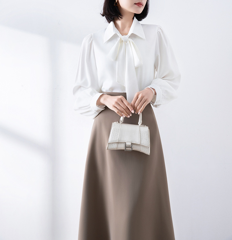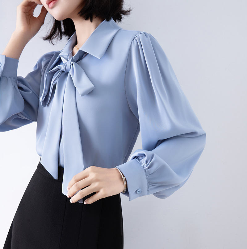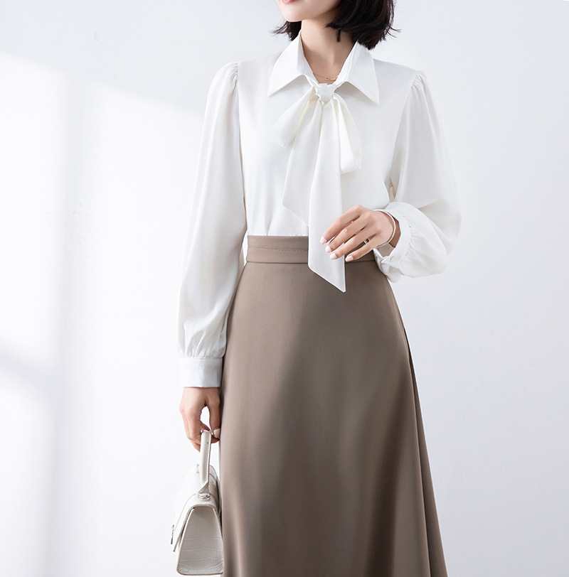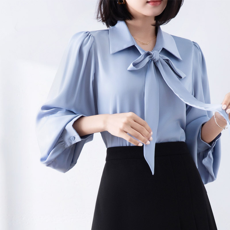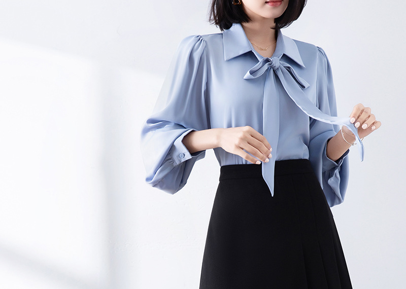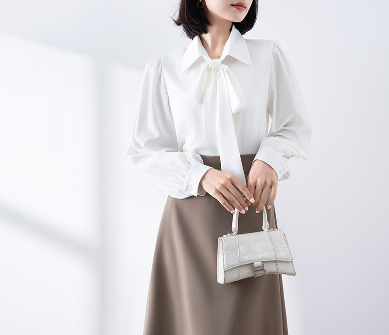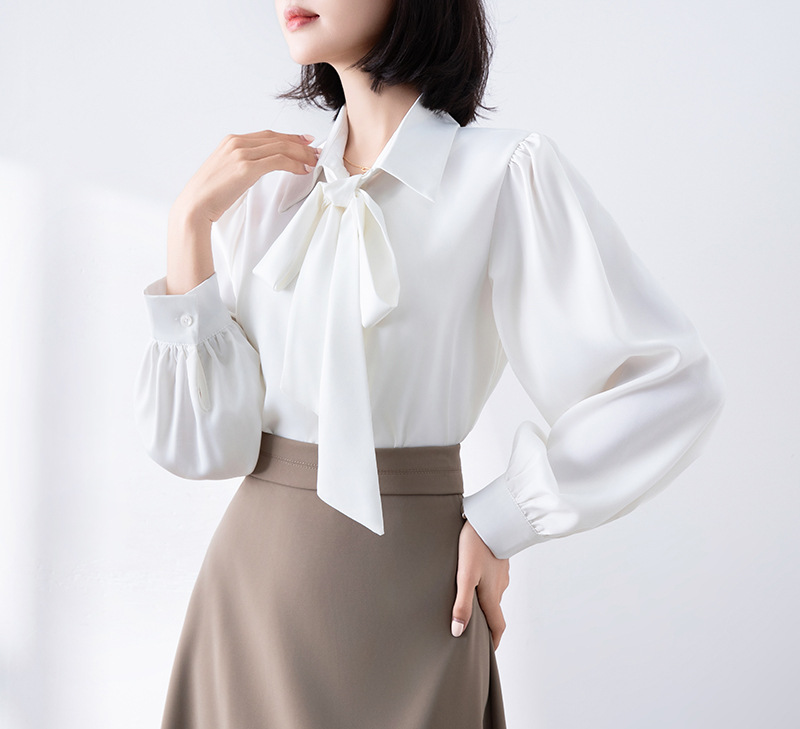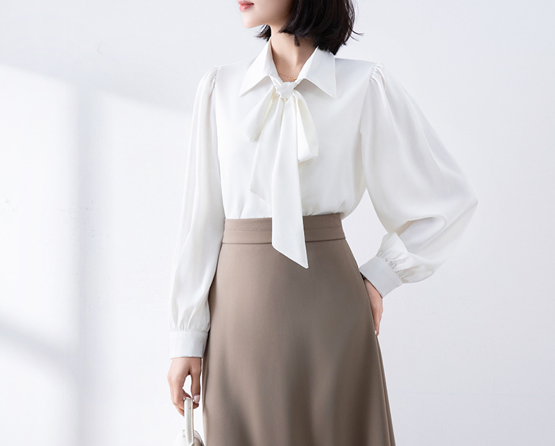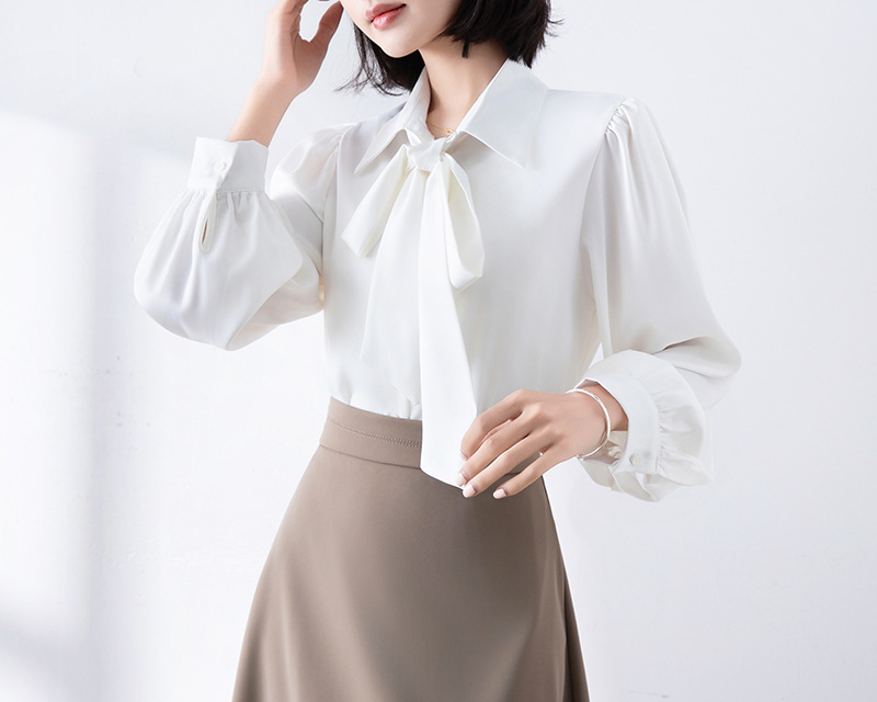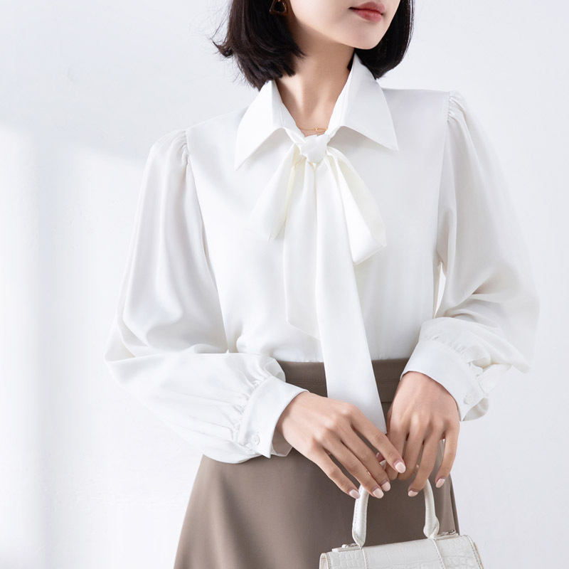 쉬폰 활 셔츠 여성 전문 착용 원피스 화이트 내부 인터뷰 셔츠 작업 통근 베이스 셔츠스토어 가기