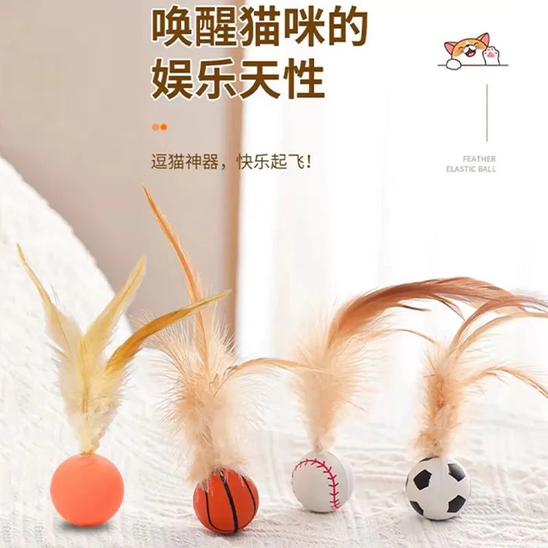 국경 간 고양이 탄성 공 닭 깃털 배드민턴 고무 공 인터랙티브 재미있는 고양이 셀프 하이 애완 동물 장난감 공스토어 가기