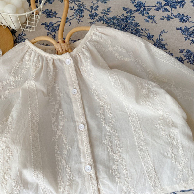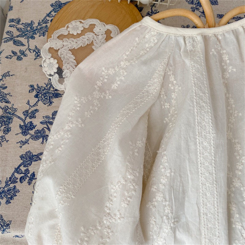새로운 도착 가을 소녀의 예술적 스타일 레이스 전체 자수 셔츠 어린이 총면 라운드 넥 탑스토어 가기
