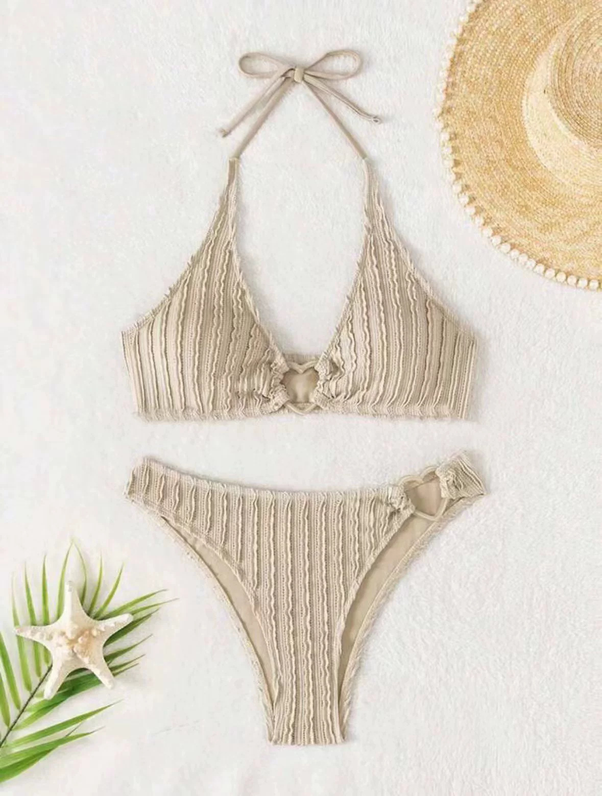 2025 유럽과 미국의 새로운 섹시한 사랑 비키니 비키니 단색 투피스 수영복 수영복 여성 국경 대외 무역