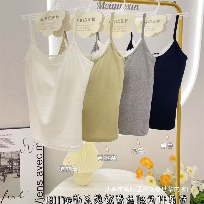 새로운 8117 고정 컵 가슴 패드 스파이스 소녀 Bottoming 셔츠 레이스 아름다운 백 카미 솔 여성의 슬림 핏 이너 탑