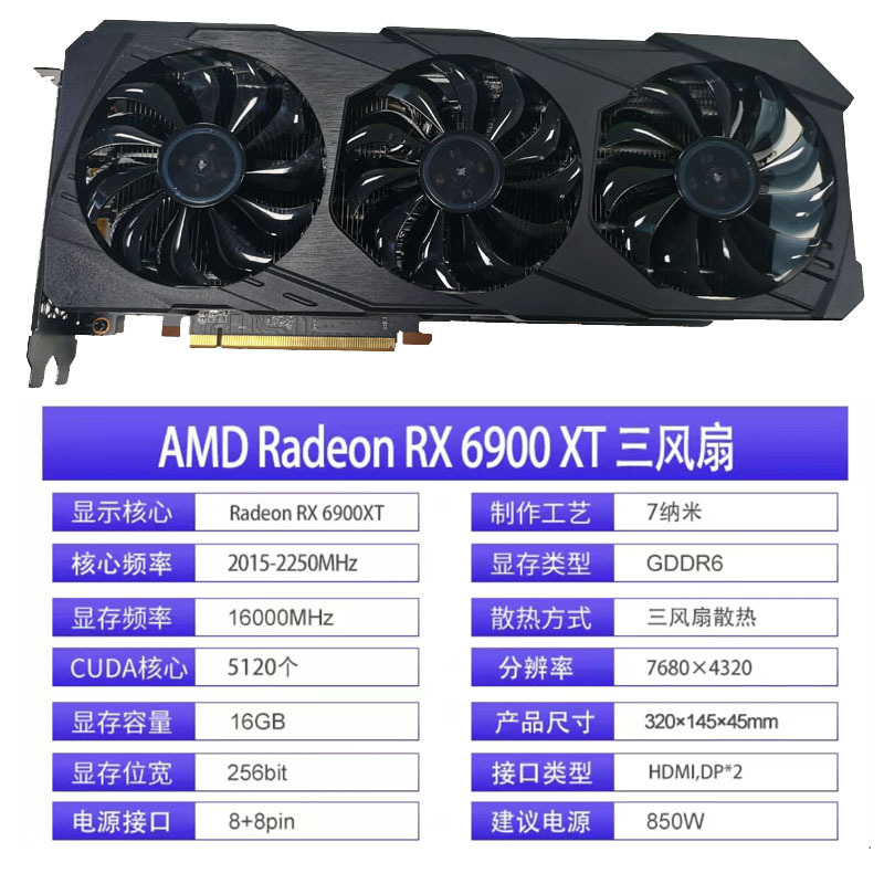 게임 그래픽 카드 RX6800XT 서버 그래픽 카드 RX6900XT 16G 트리플 팬 컴퓨팅 카드 고정밀 연산