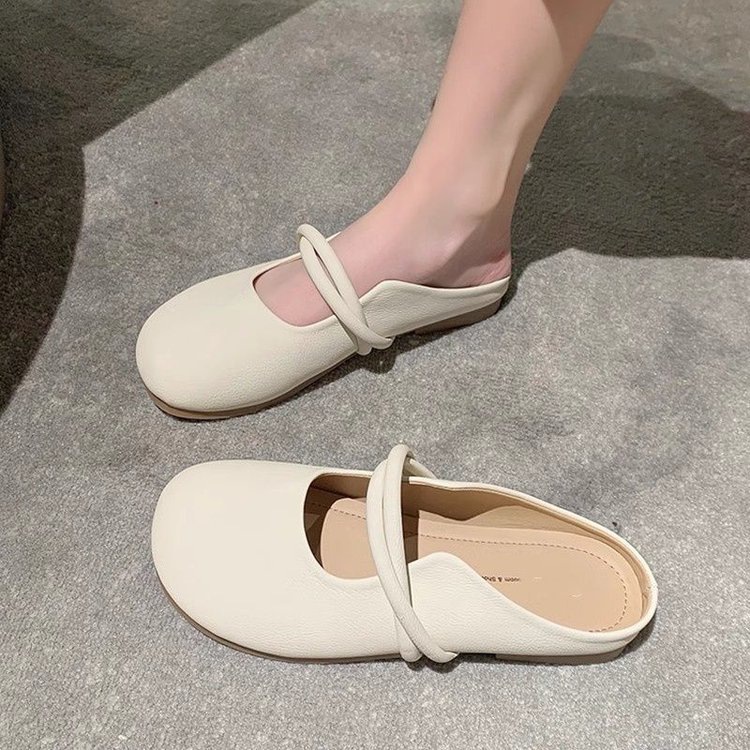 바오터우 반 슬리퍼 여성 외부 착용 싱글 신발 2025 봄 임산부를 위한 새로운 소프트 플랫 슬리퍼 프랑스 우아한 한국 스타일에 적합