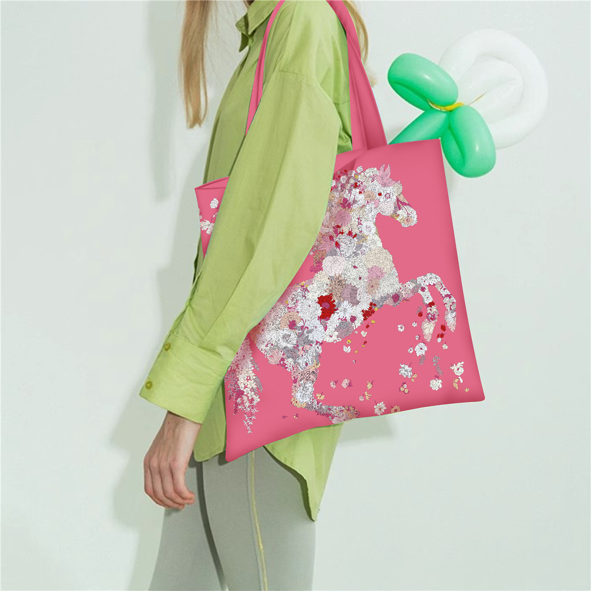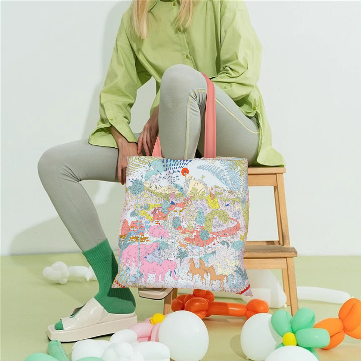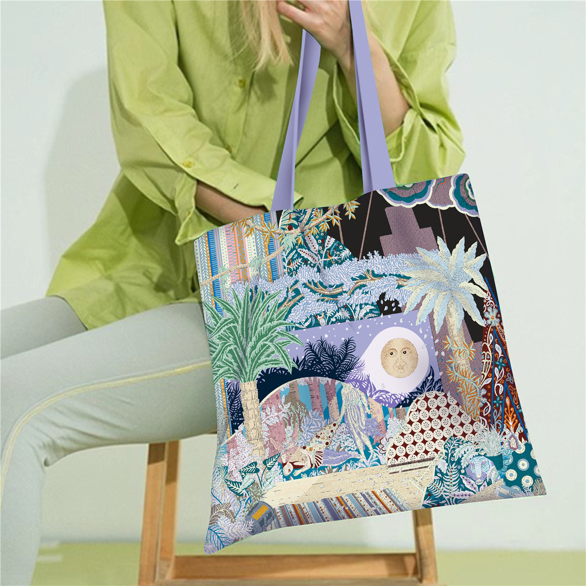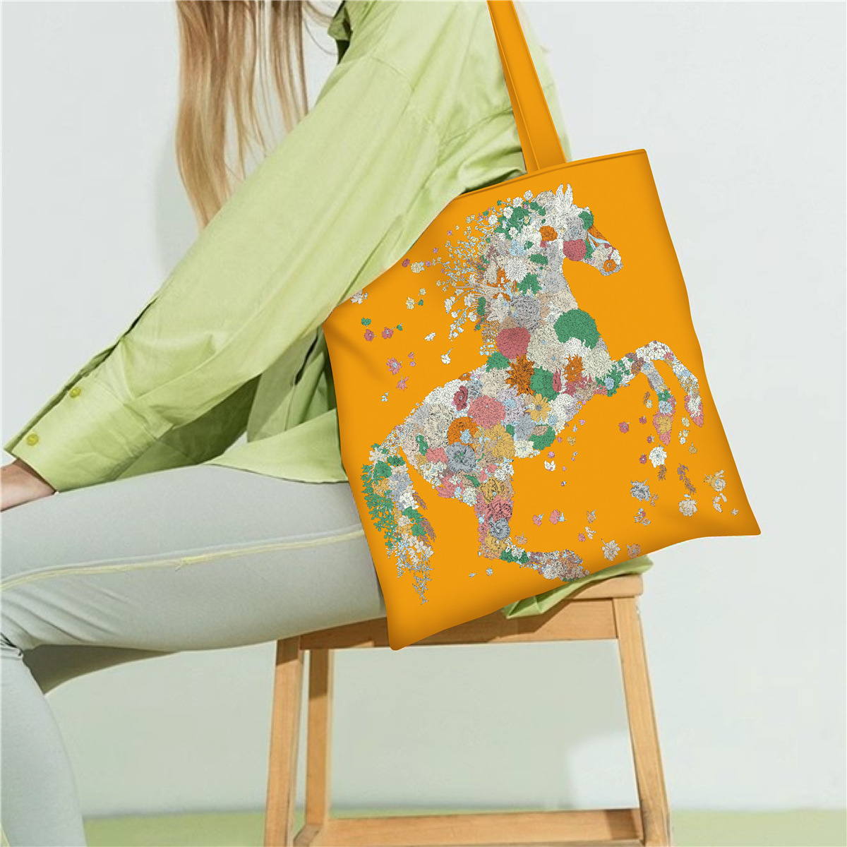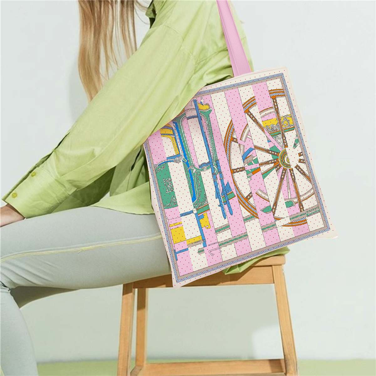 유럽과 미국의 봄 새로운 인쇄 핸드백 여성 유화 시리즈 핸드백 어깨 가방 토트 백 패션 캔버스 가방스토어 가기