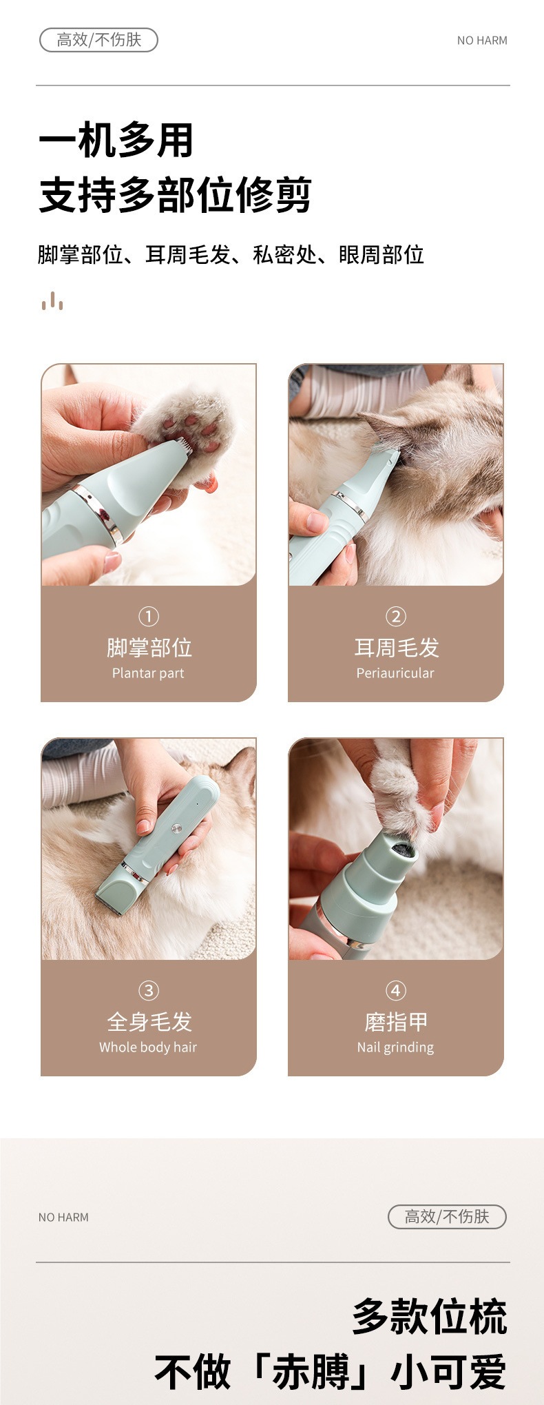 애완 동물 헤어 면도 전기 클리퍼 개 고양이 면도 개 머리 면도 발 헤어 푸셔 헤어 전단