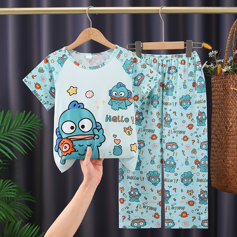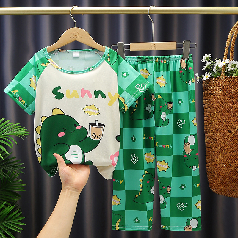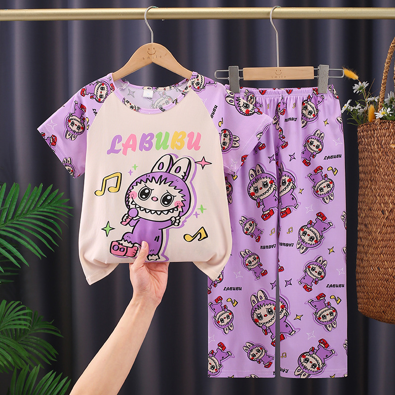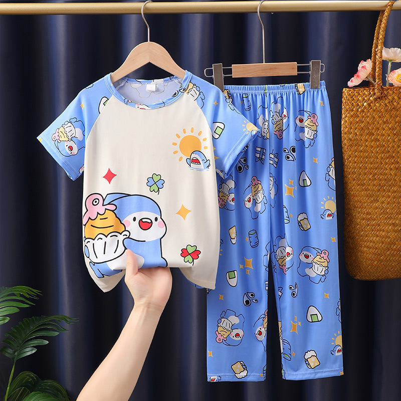 어린이 잠옷 2025 새로운 여름 소녀 얇은 반팔 바지 여아 중 · 빅 키즈 남자 홈 의류 여름