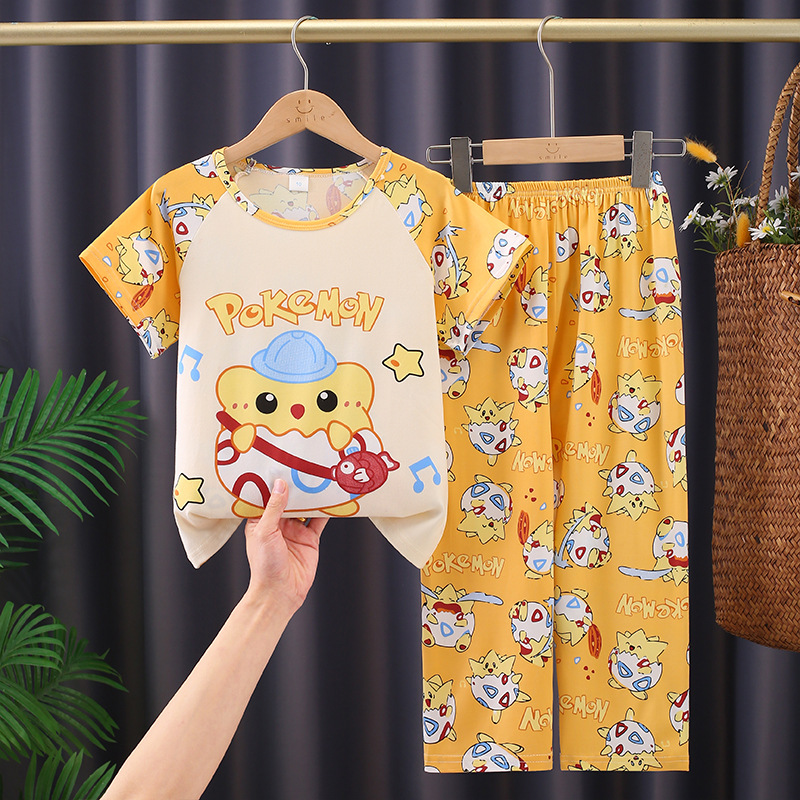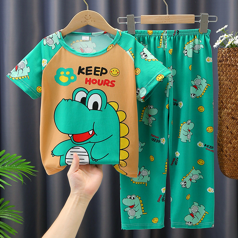 商品详情图_儿童睡衣2024新款夏季男孩薄款短袖长裤女童中大