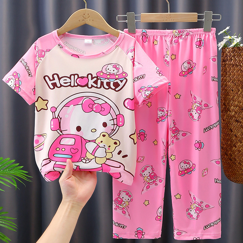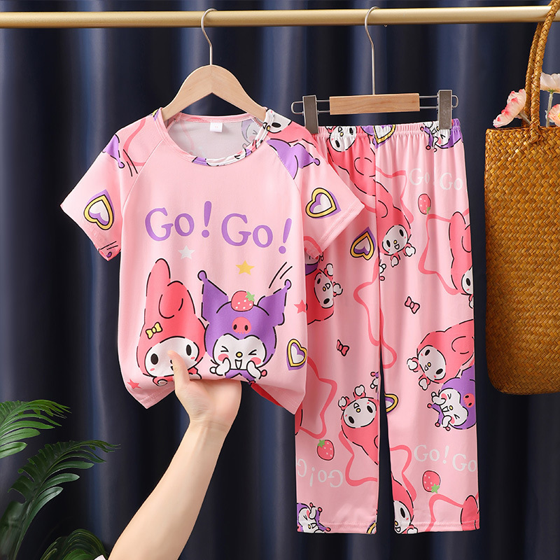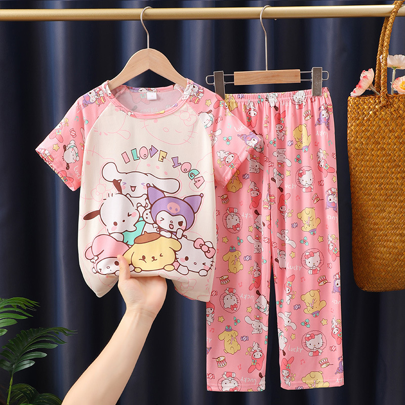 어린이 잠옷 2025 새로운 여름 소녀 얇은 반팔 바지 여아 중 · 빅 키즈 남자 홈 의류 여름스토어 가기