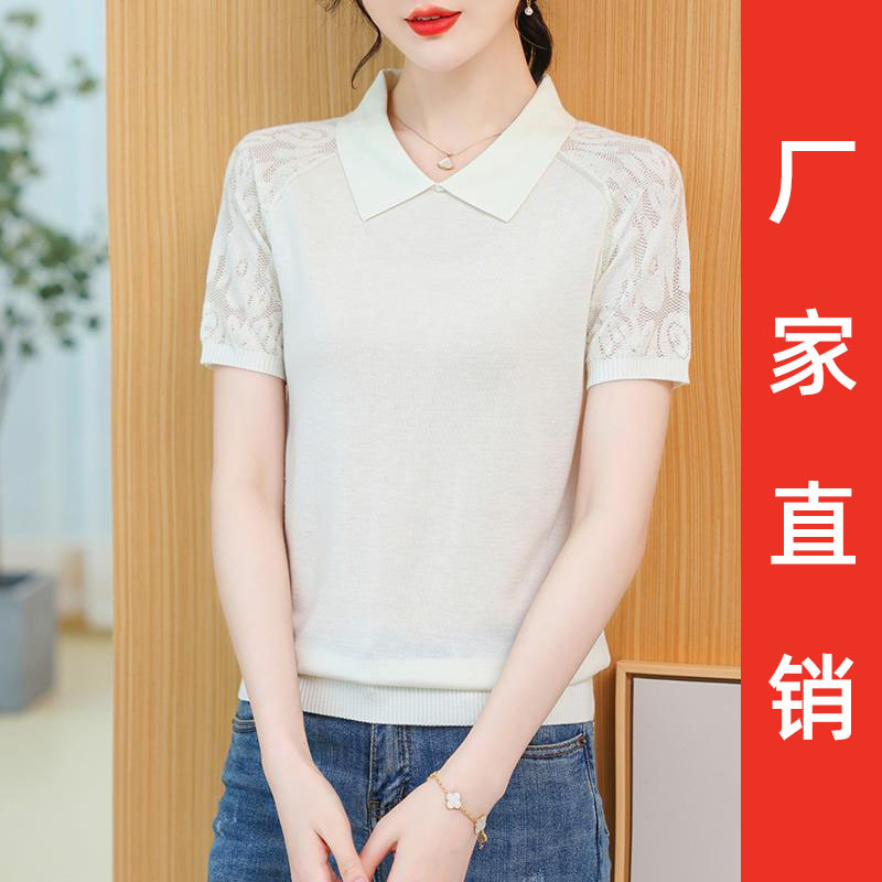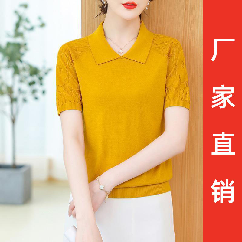 여름 새 스타일 얇은 반팔 아이스 실크 티셔츠 여성용 인형 목걸이 슬림 핏 엄마의 니트웨어 여성용 탑스토어 가기