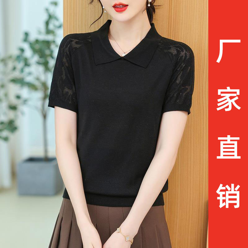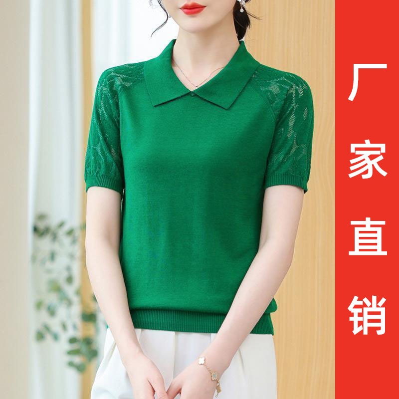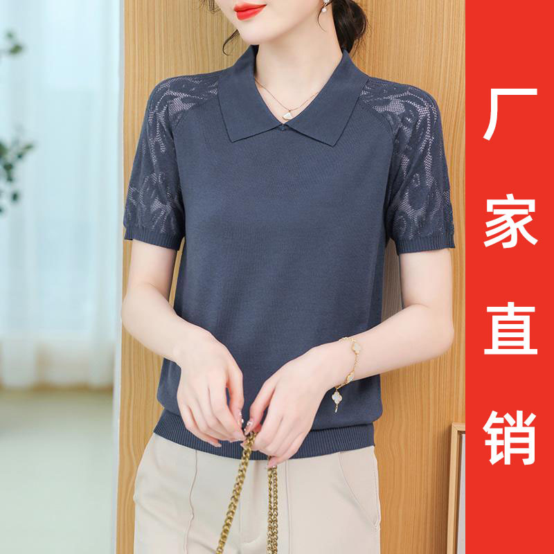 여름 새 스타일 얇은 반팔 아이스 실크 티셔츠 여성용 인형 목걸이 슬림 핏 엄마의 니트웨어 여성용 탑