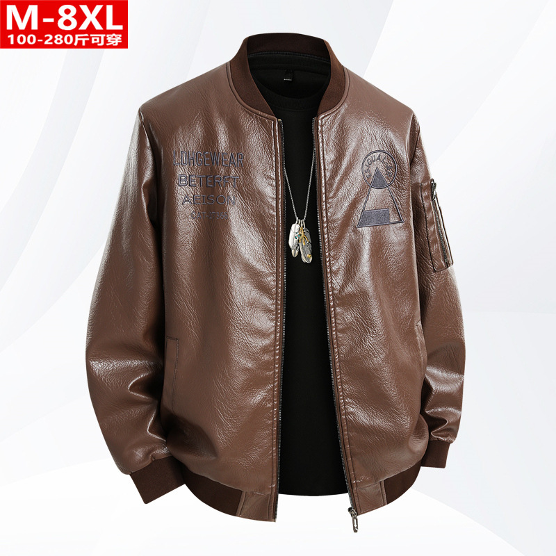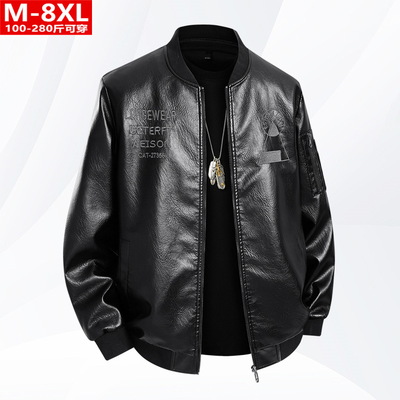 봄과 가을 트렌디 한 남성 패션 야구 칼라 자수 오토바이 가죽 자켓 통통 대형 플러스 뚱뚱한 느슨한 캐주얼 자켓