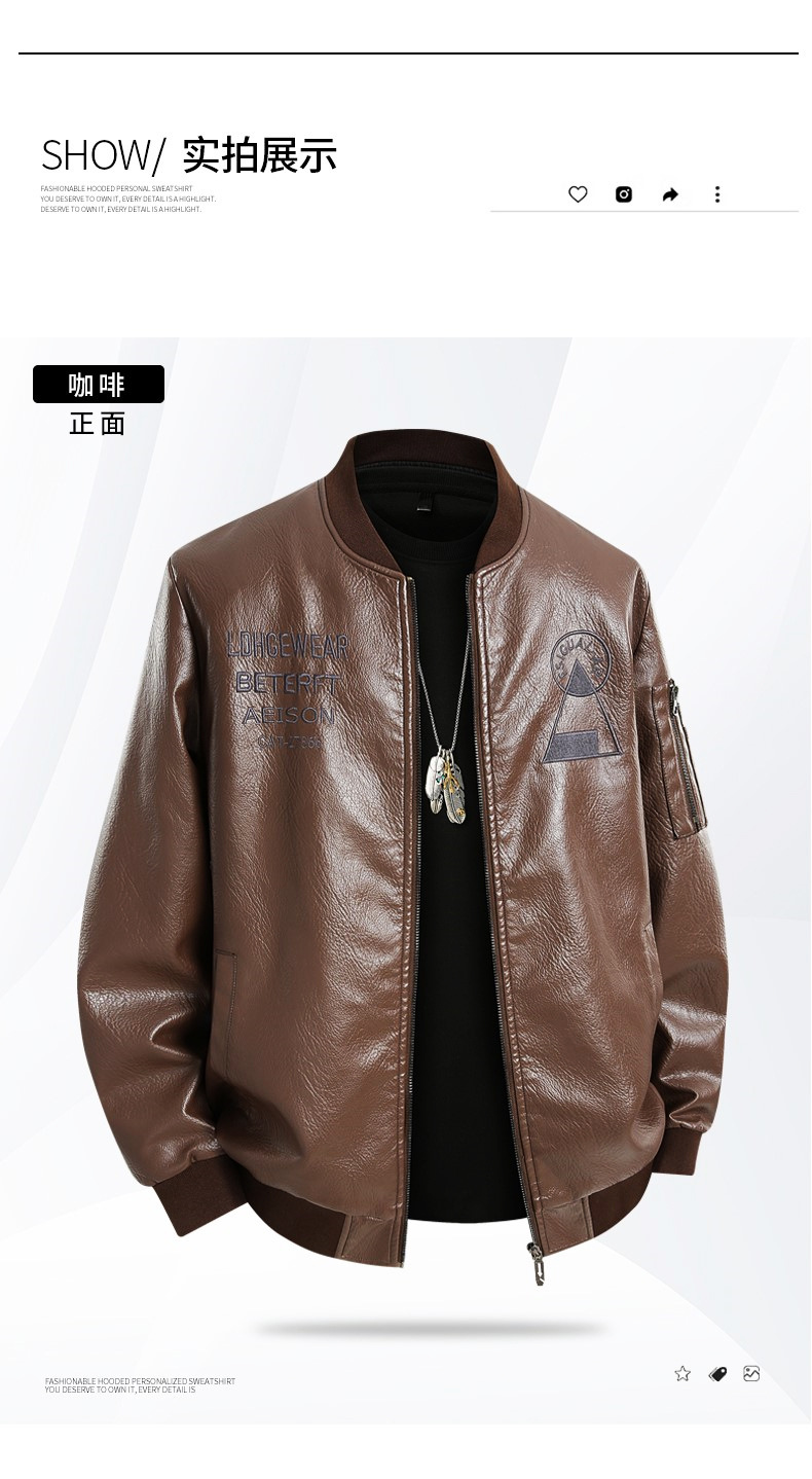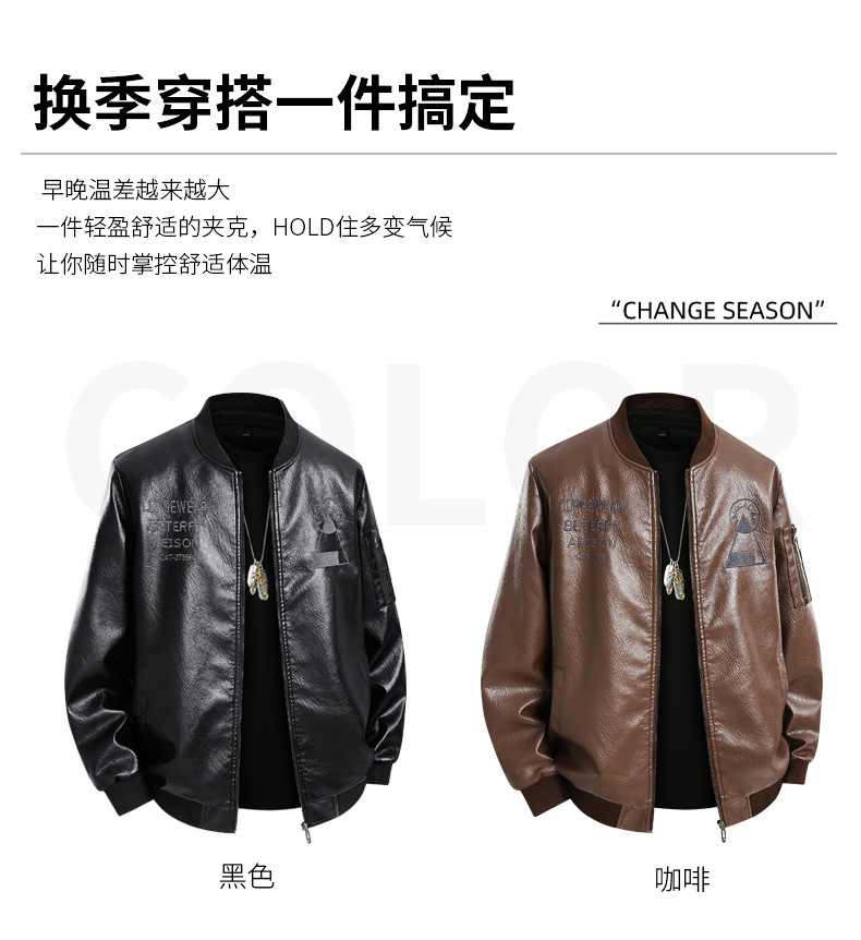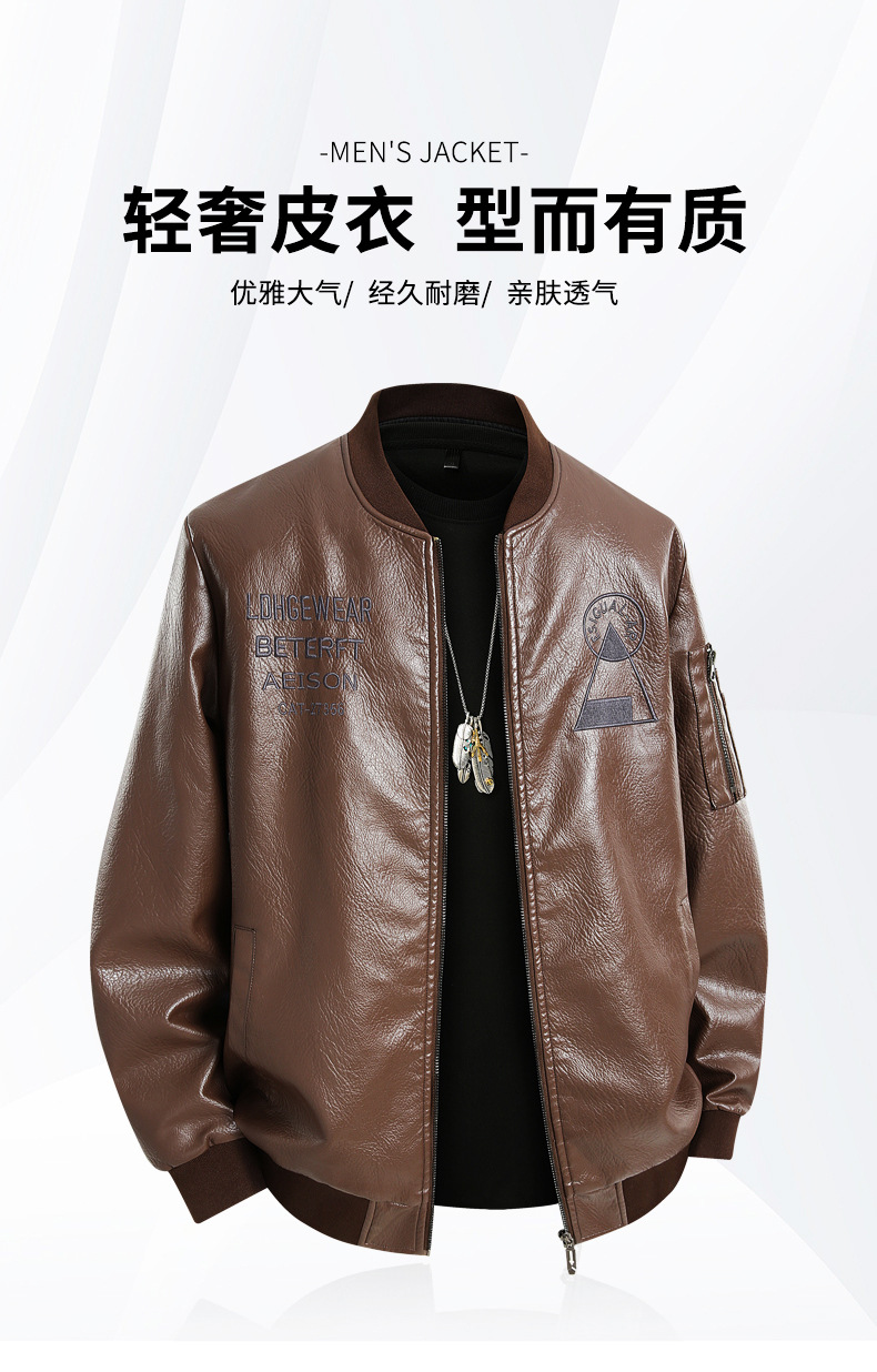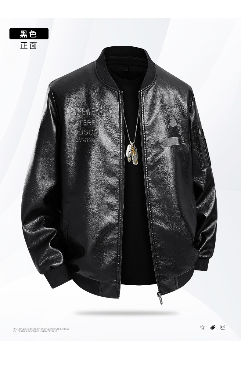 봄과 가을 트렌디 한 남성 패션 야구 칼라 자수 오토바이 가죽 자켓 통통 대형 플러스 뚱뚱한 느슨한 캐주얼 자켓스토어 가기