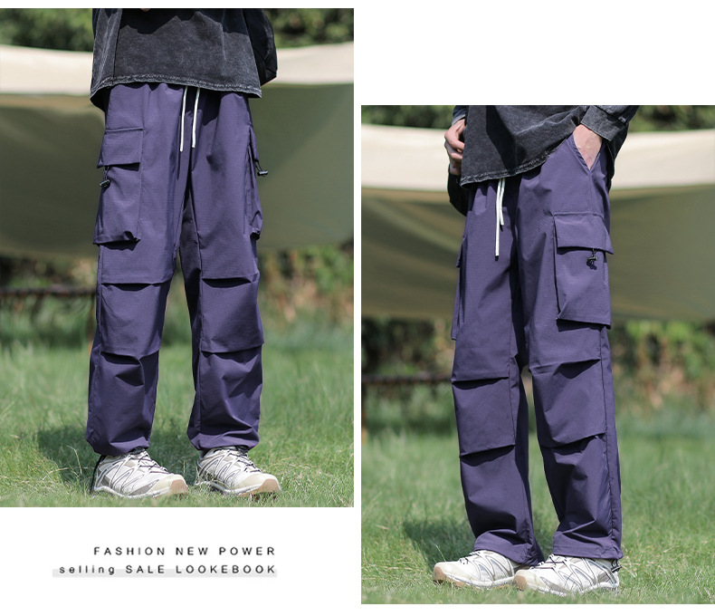 봄과 가을 야외 등산 스트레이트 바지 남녀 스포츠 트렌디 한 크록 바지 느슨한 낙하산 바지 캐주얼 롱 바지스토어 가기