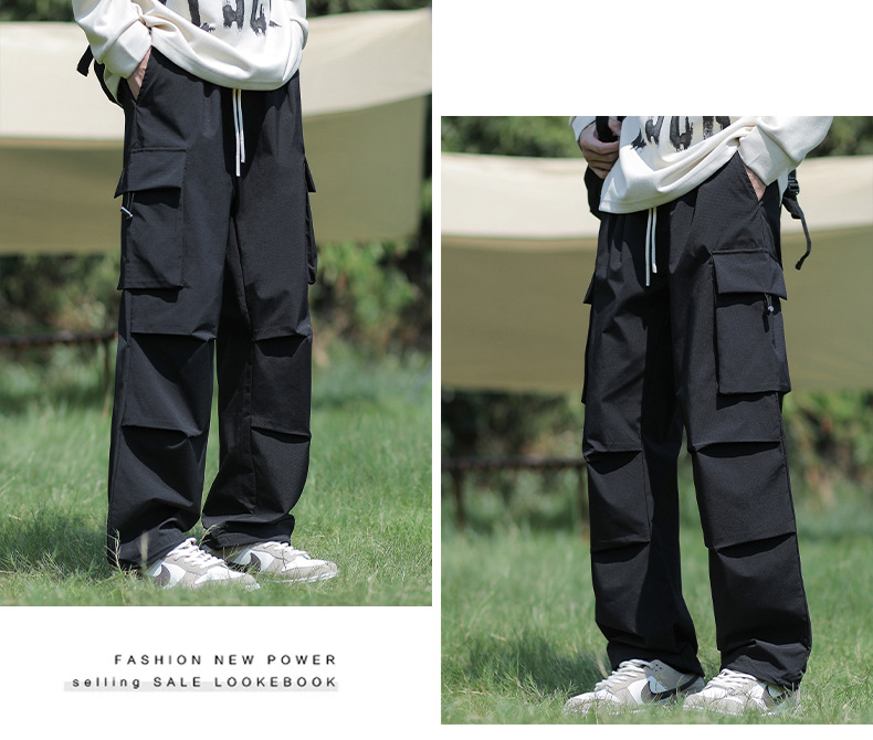 봄과 가을 야외 등산 스트레이트 바지 남녀 스포츠 트렌디 한 크록 바지 느슨한 낙하산 바지 캐주얼 롱 바지