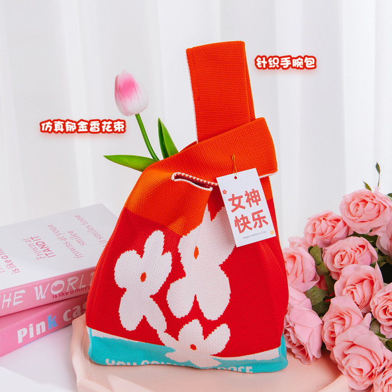 • [빨간 작은 꽃] 니트 손목 가방 패키지 D