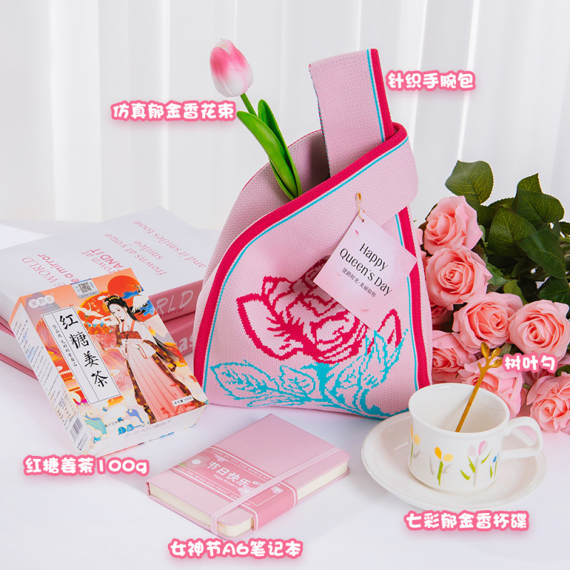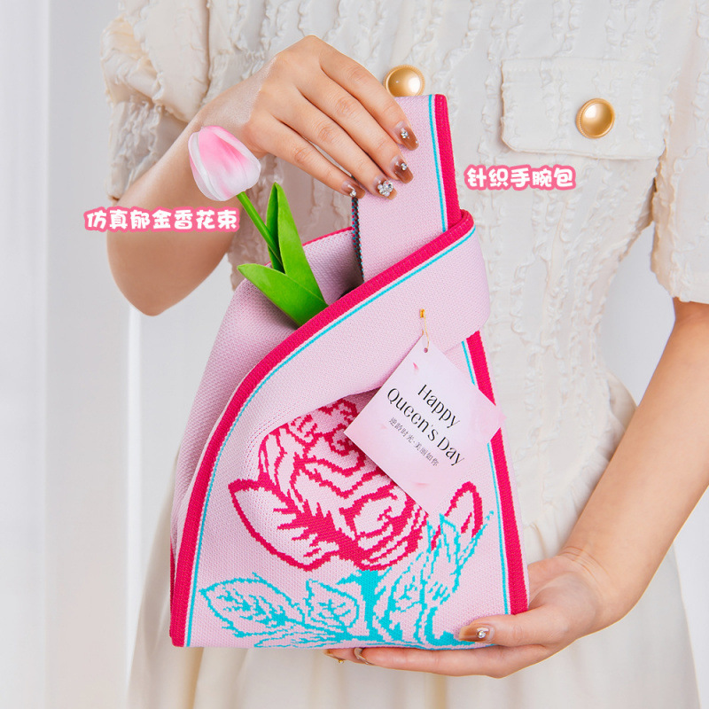 • [핑크로즈] 니트 손목가방 패키지D