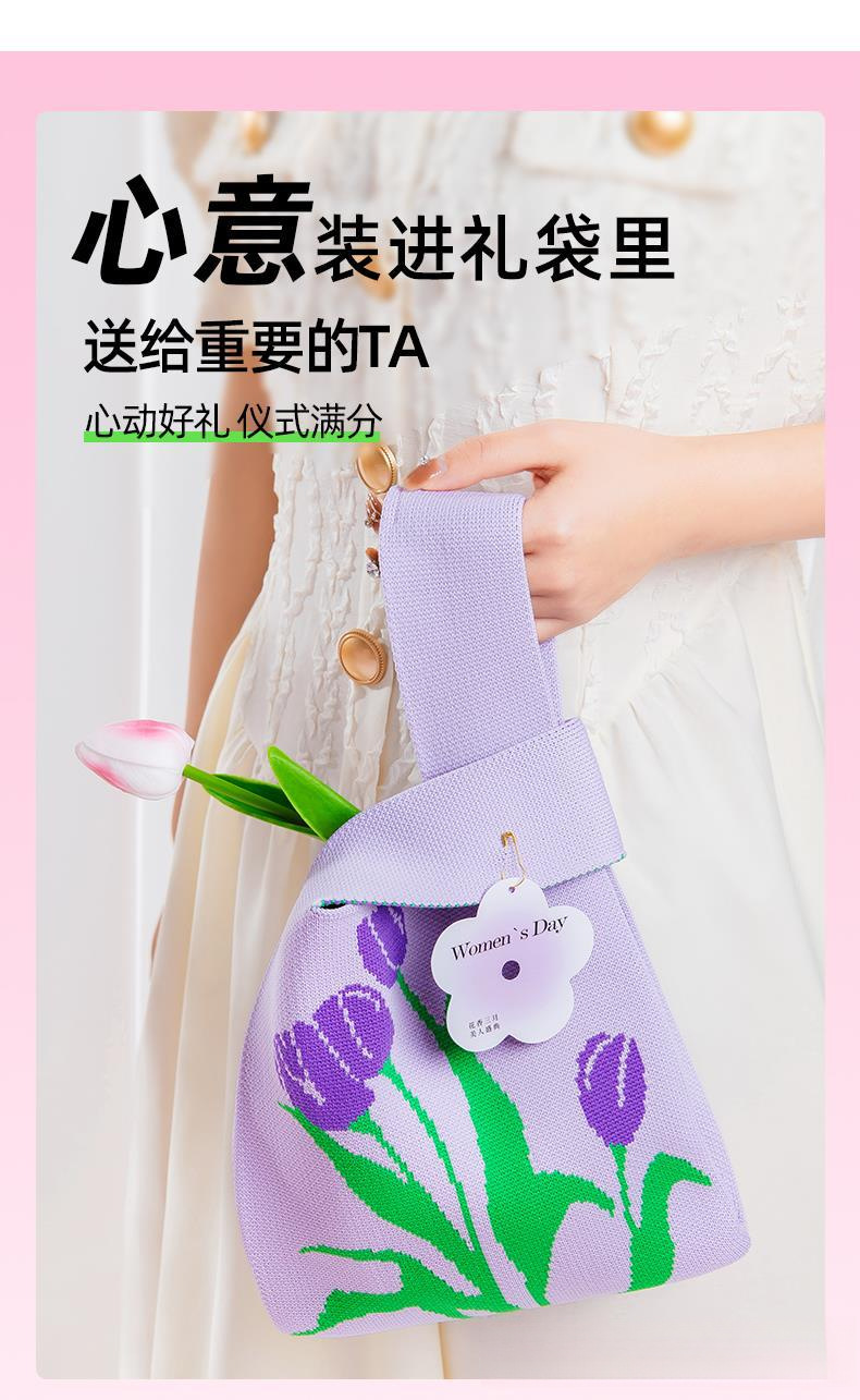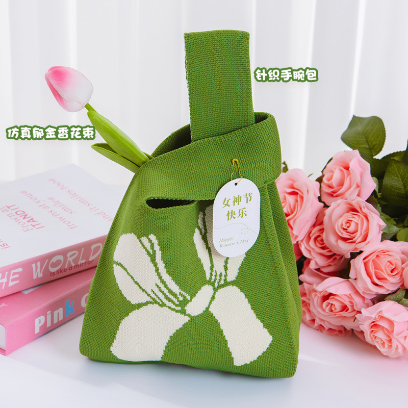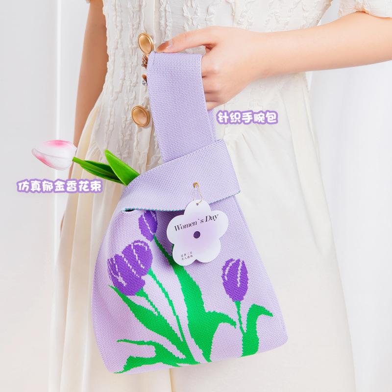 • [핑크&그린 튤립] 니트 손목가방 패키지B