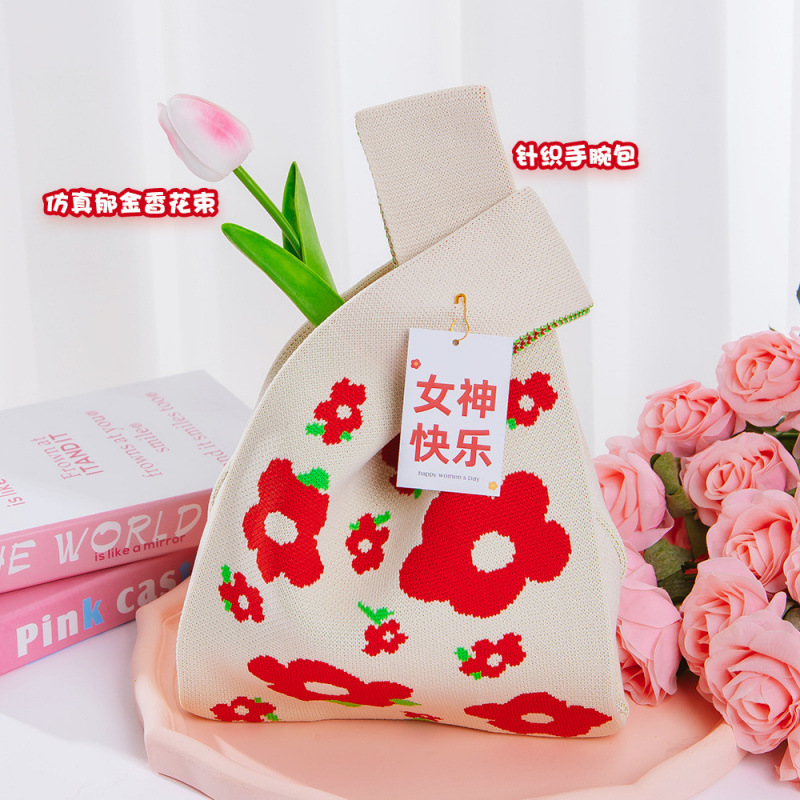 • [빨간 작은 꽃] 니트 손목 가방 패키지 A