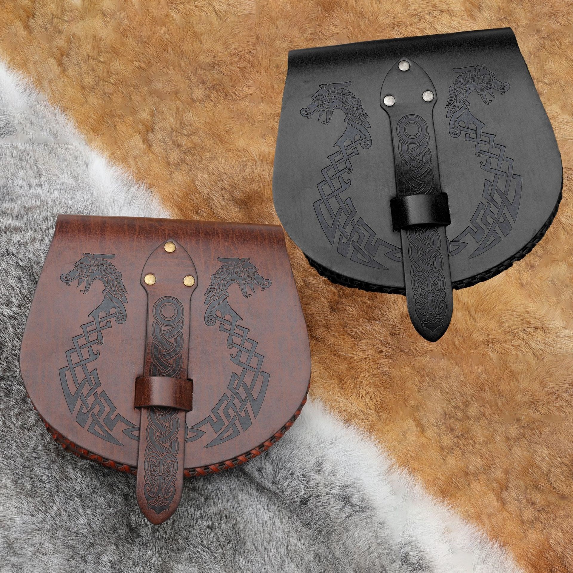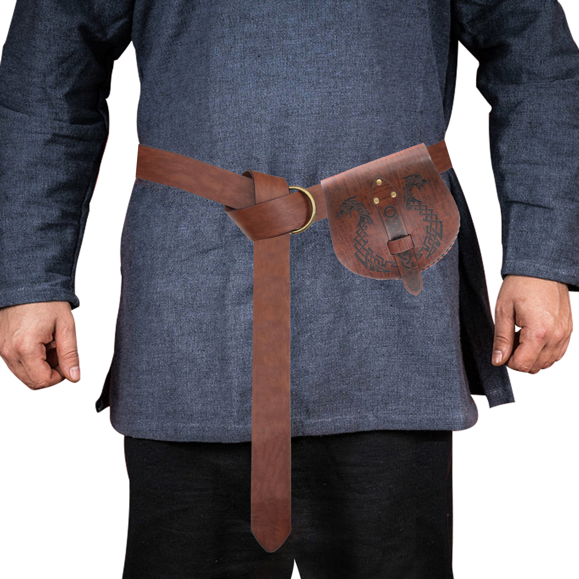 새로운 중세 르네상스 교수형 벨트 허리 가방 드래곤 패턴 가죽 기사 동전 지갑 COSPLAY 소품