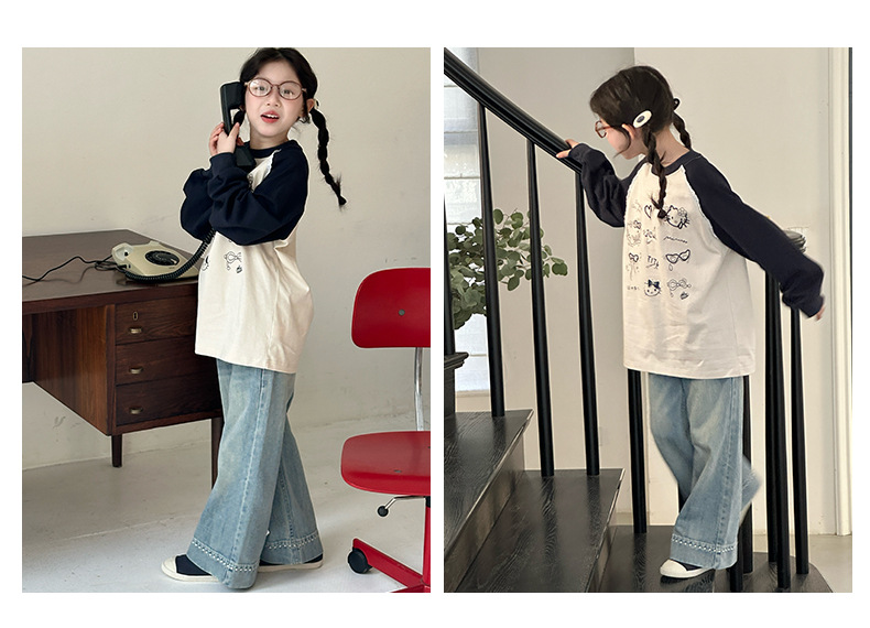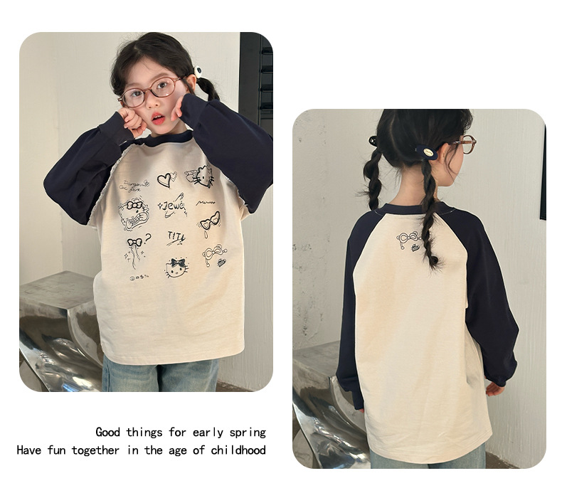 소녀베이스 셔츠 봄 티셔츠 긴 소매 2025 새로운 소녀 루즈 탑 어린이 이른 봄 서양식 옷스토어 가기