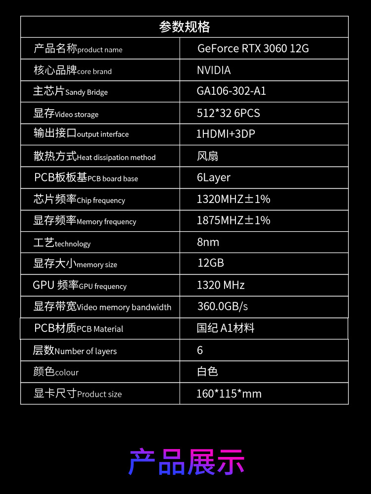 게임 그래픽 카드 RTX3060 12G 그래픽 카드 GDDR6 서버 GPU 대형 모델 딥시크 컴퓨팅 카드