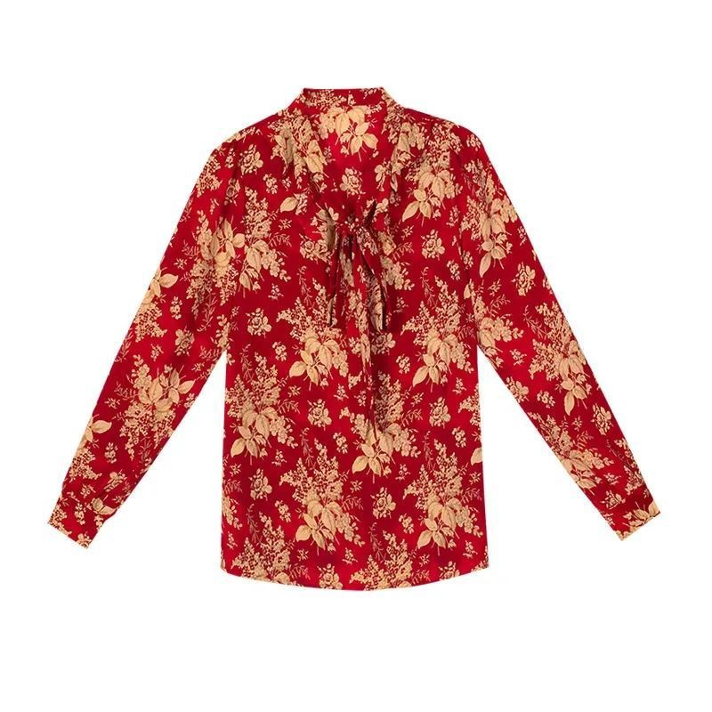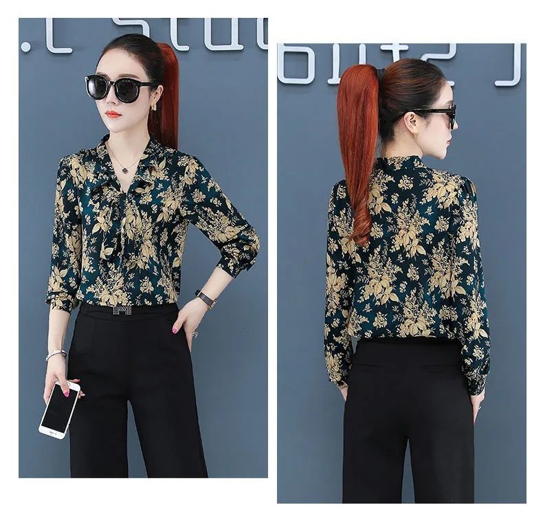 시폰 셔츠 여성 긴팔 가을 2025 신형 한국식 탑 서양식 중년 어머니의 꽃 시폰 셔츠스토어 가기