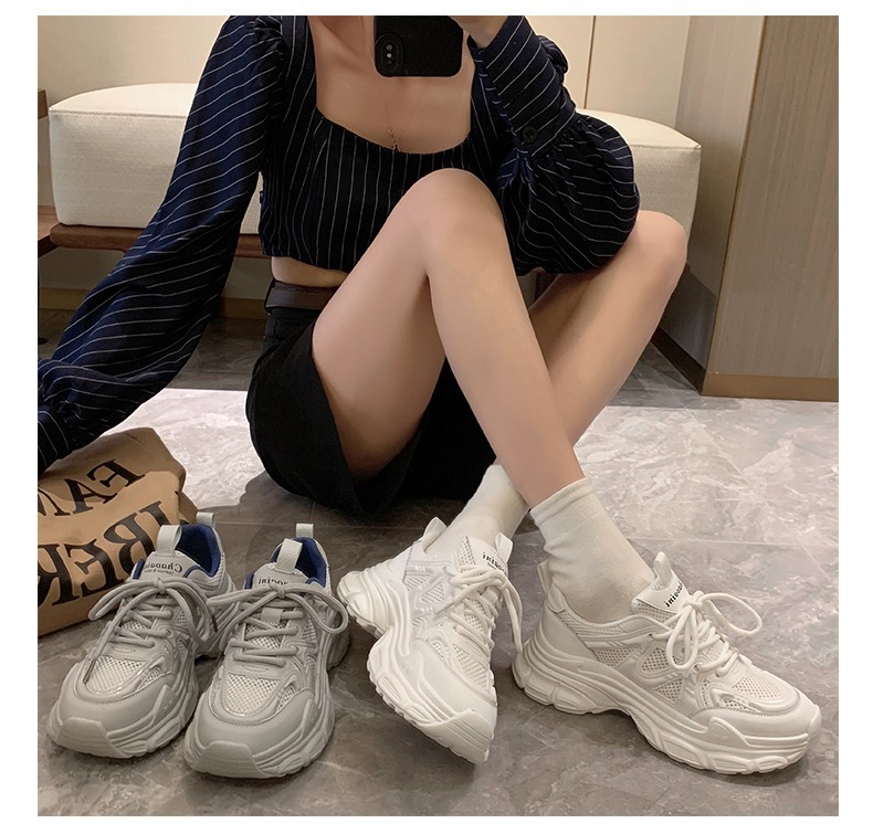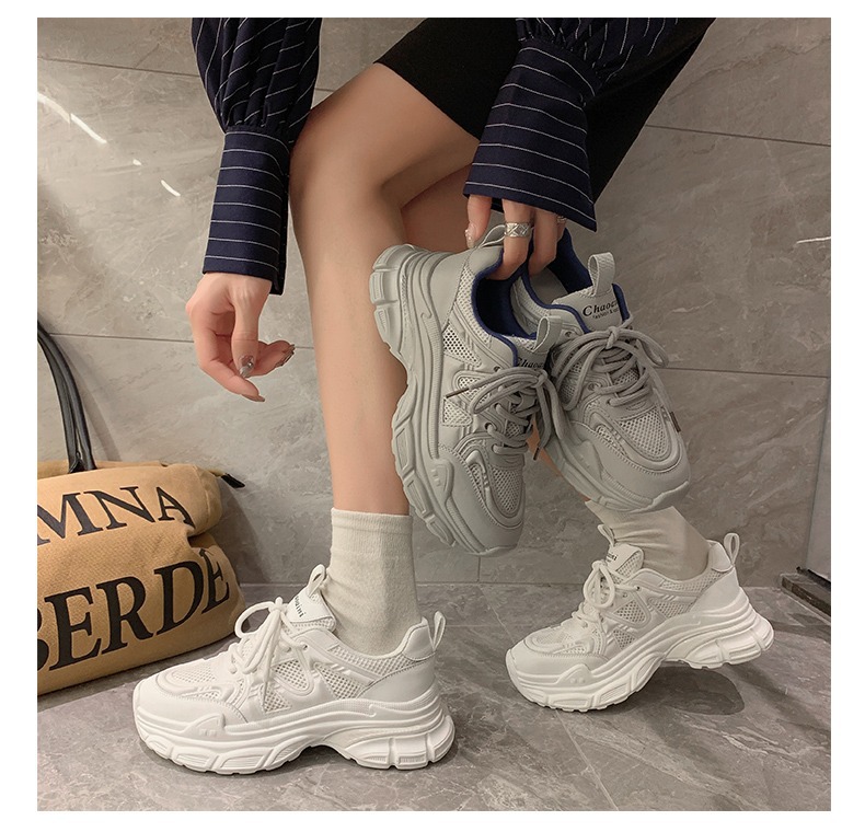 토레 신발 여성 신발 2025 새로운 여름 초가을 메쉬 신발 통기성 메쉬 스펀지 케이크 두꺼운 바닥 흰색 신발 운동화스토어 가기