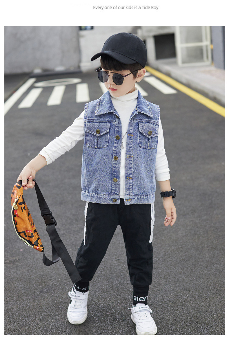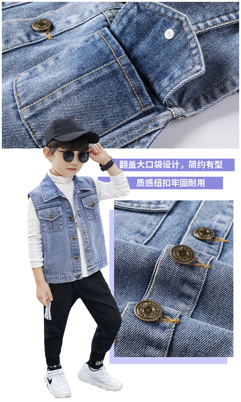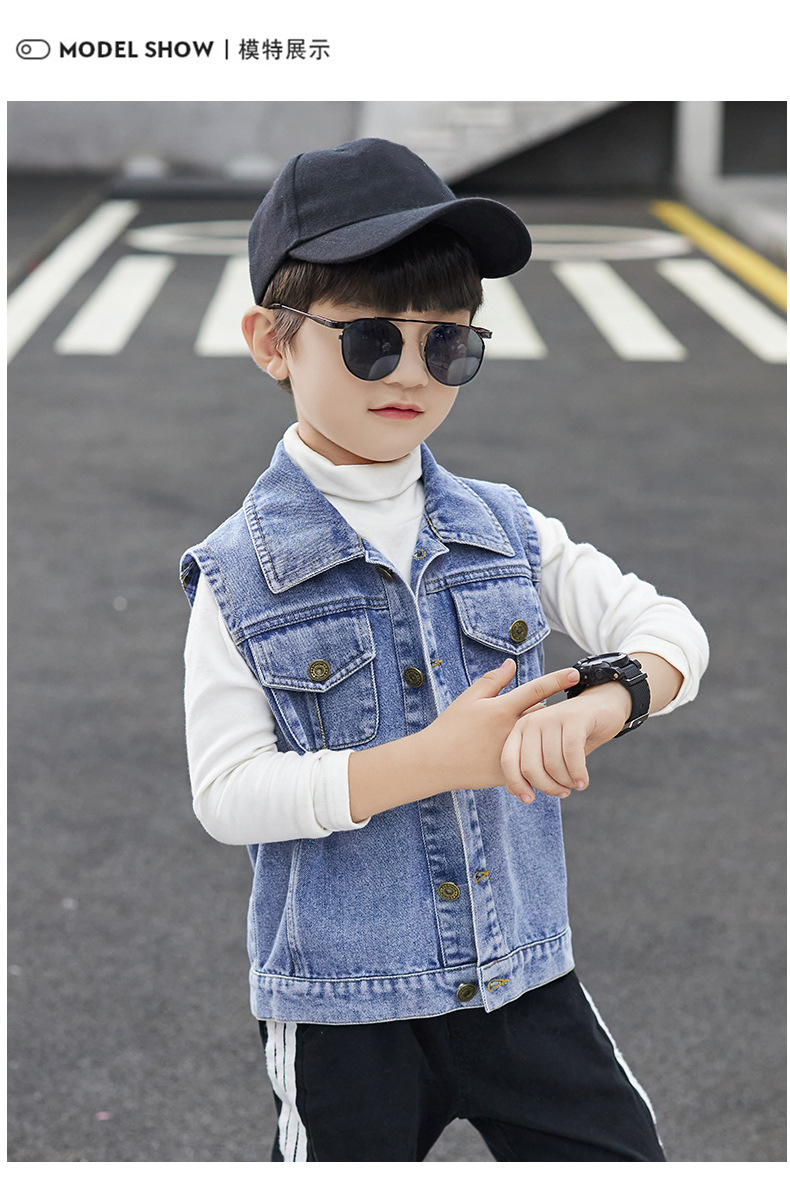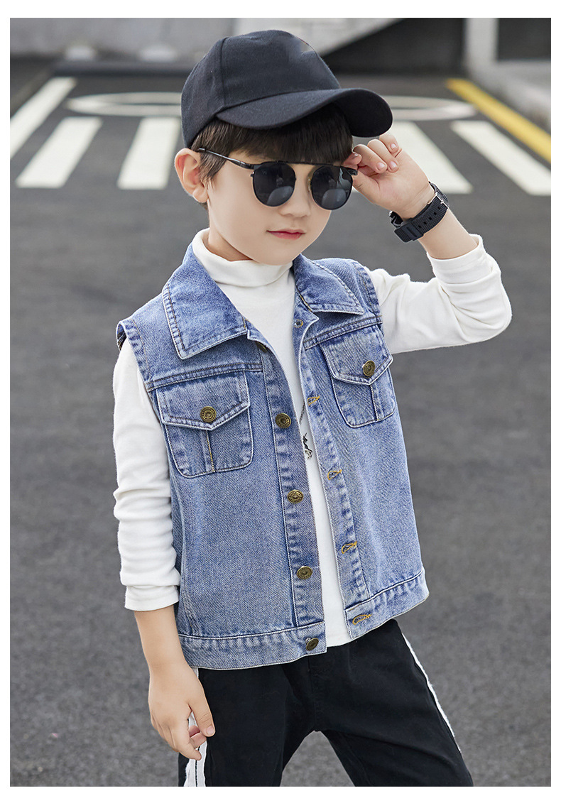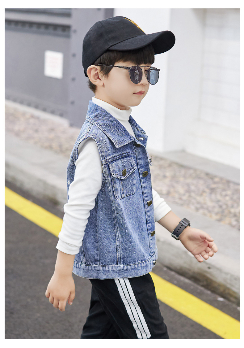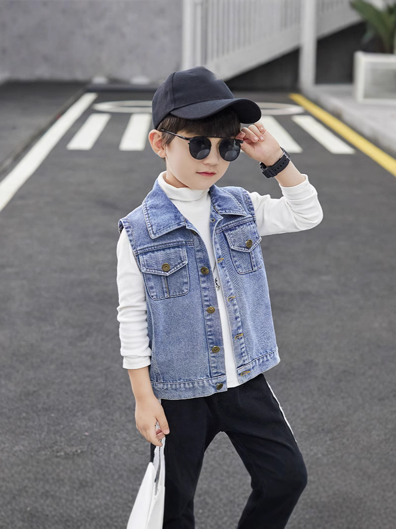 데님 조끼 소년 봄과 가을 코트 2025 조끼 어린이 최고 세련된 유행 봄 얇은 조끼스토어 가기