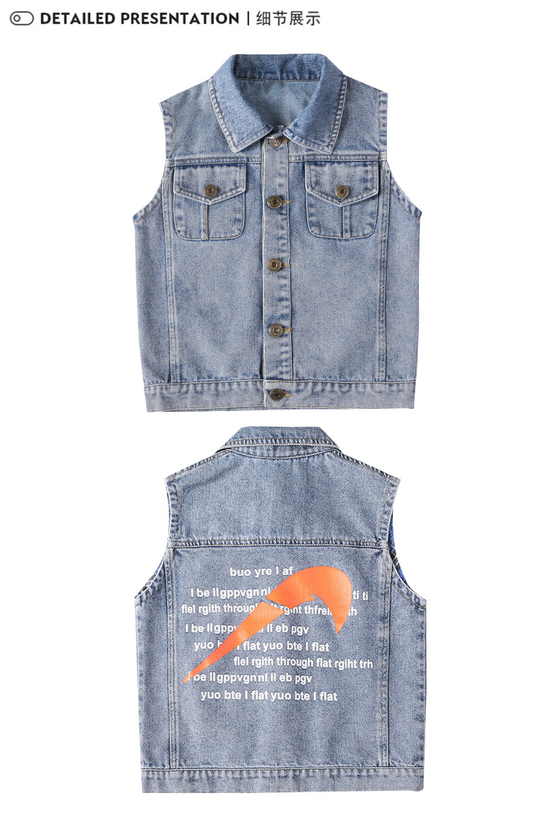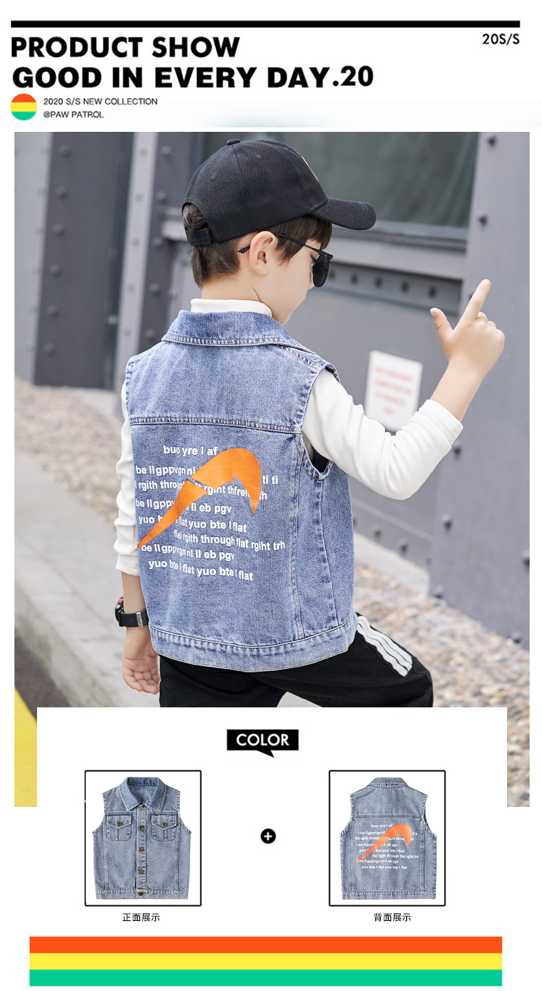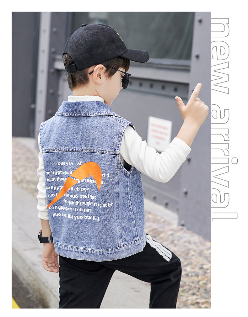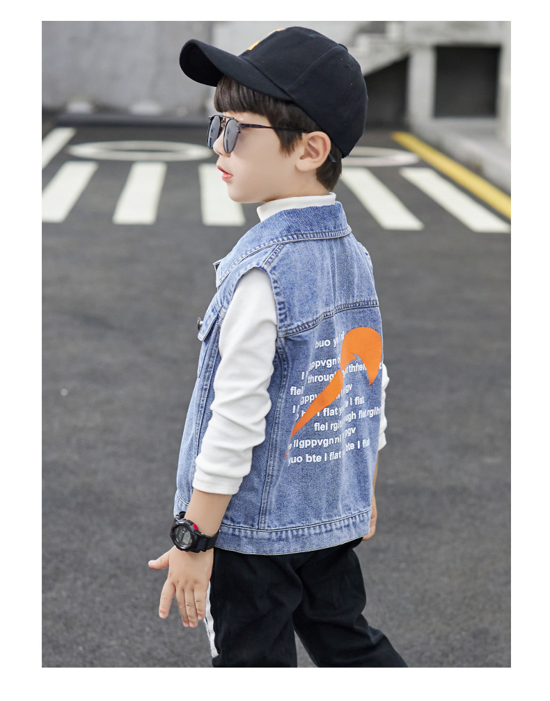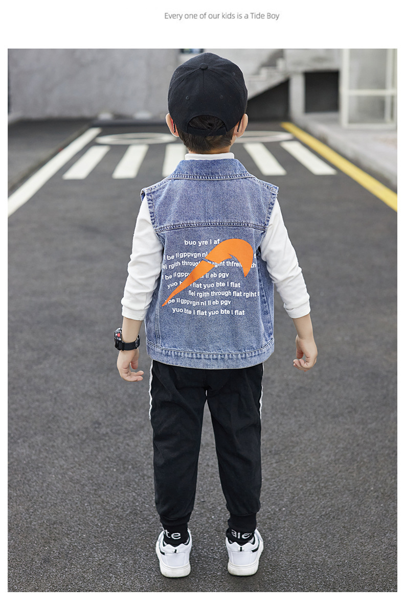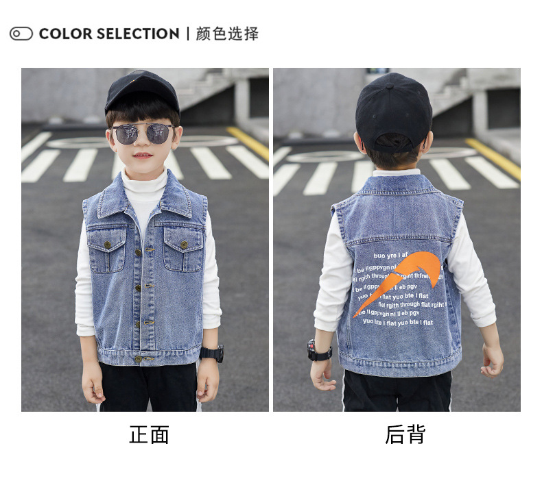 데님 조끼 소년 봄과 가을 코트 2025 조끼 어린이 최고 세련된 유행 봄 얇은 조끼스토어 가기